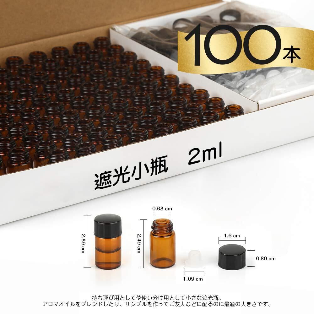 遮光瓶 2ml アロマ保存容器 100本 遮光ビン ガラス製 精油瓶 アロマオイル保存用遮光瓶 茶色 アロマ用遮光瓶 持ち運び用 サンプル用