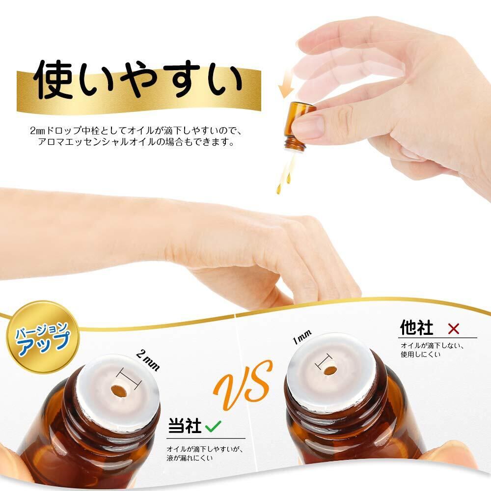 【バージョンアップ版】オイルが滴下しやすいが、液が漏れにくい。中栓の穴のサイズは2㎜ですので、以前の1mmより少し大きく、アロマが出てきてくれやすい。アロマエッセンシャルオイルの場合も使用しやすいです。