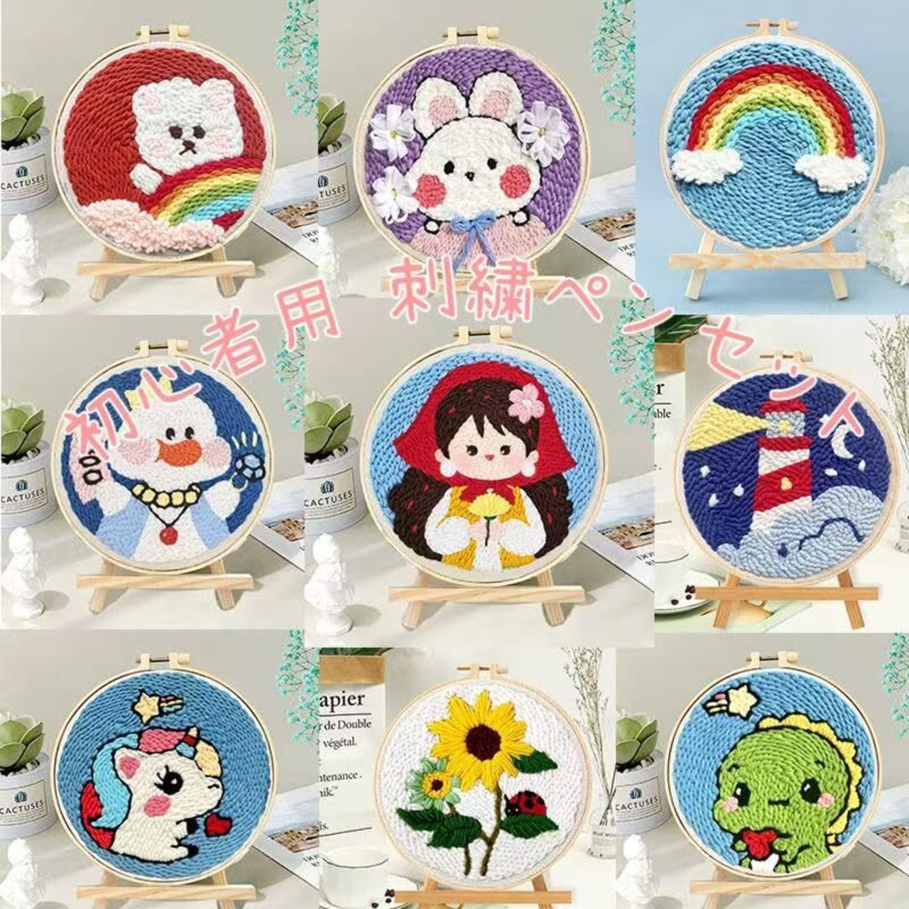 初心者用 刺繍ペンセット パンチニードル ニードルペン 刺繍 調節可能なラグ糸 針糸通し器 刺しゅうペンセット 裁縫道具 初心者用パンチニードルコースターキット 大人用 子供用 DIY 手芸用品