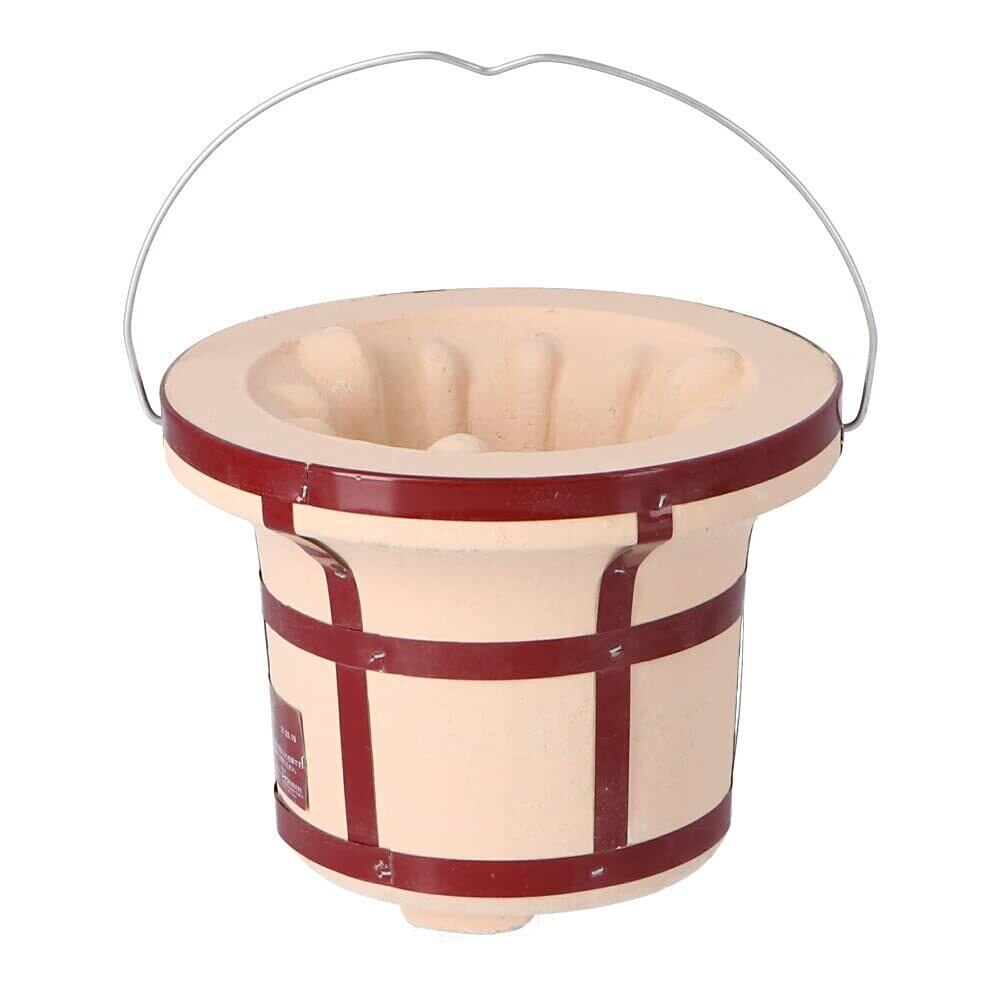 【仕様】<br>●材質:本体:珪藻土、金属部:ブリキ<br>●付属品:火皿×1<br>※網は別売り<br>●サイズ(約)<br> 本体:直径26cm、高さ19.5cm<br> 持ち手含む:直径28cm、高さ33cm<br>●質量(約):6kg<br>※商品の特性上、細かなヒビ、欠けが存在しますが使用上問題ございません※3mm前後の個体差がございます。恐れ入りますがご了承ください。