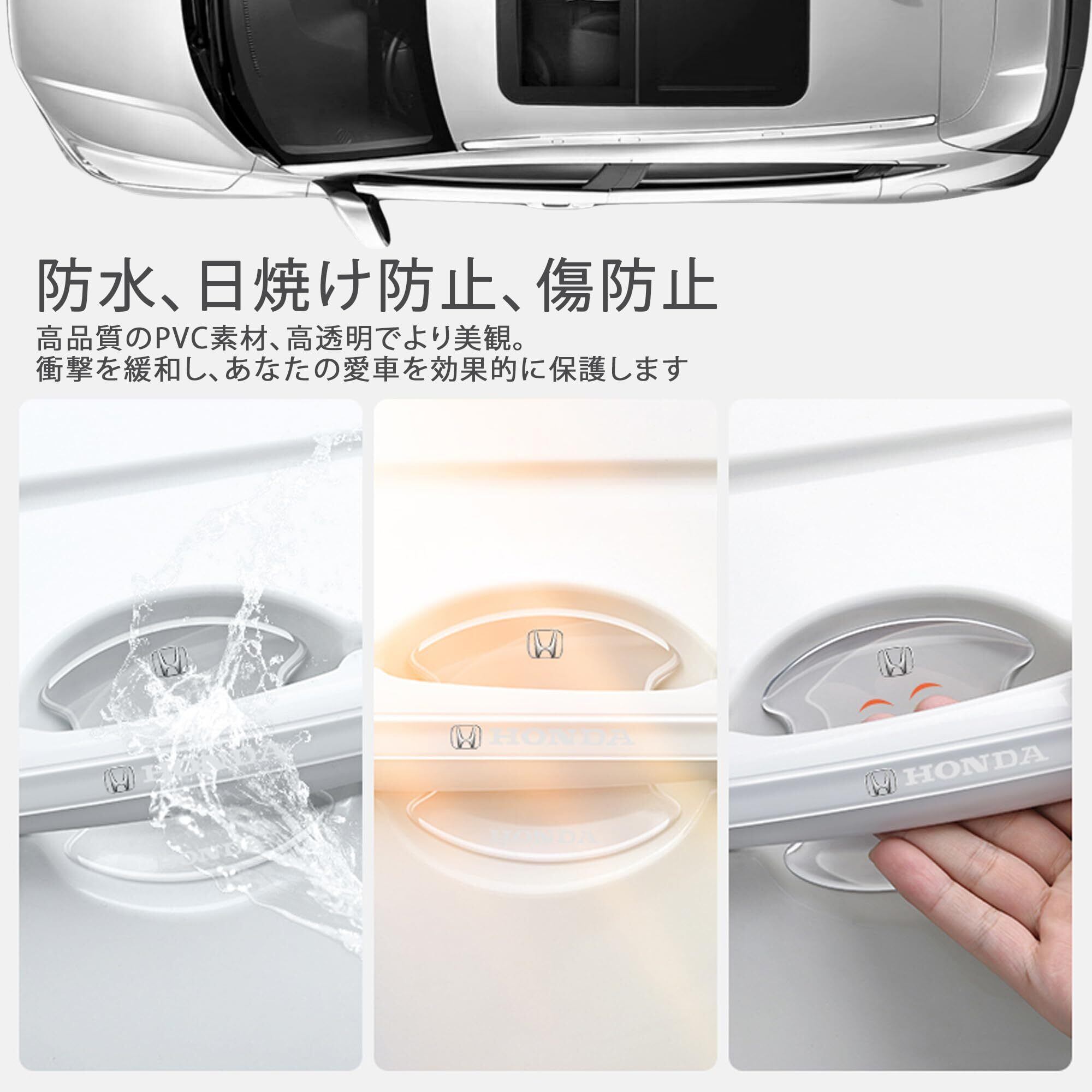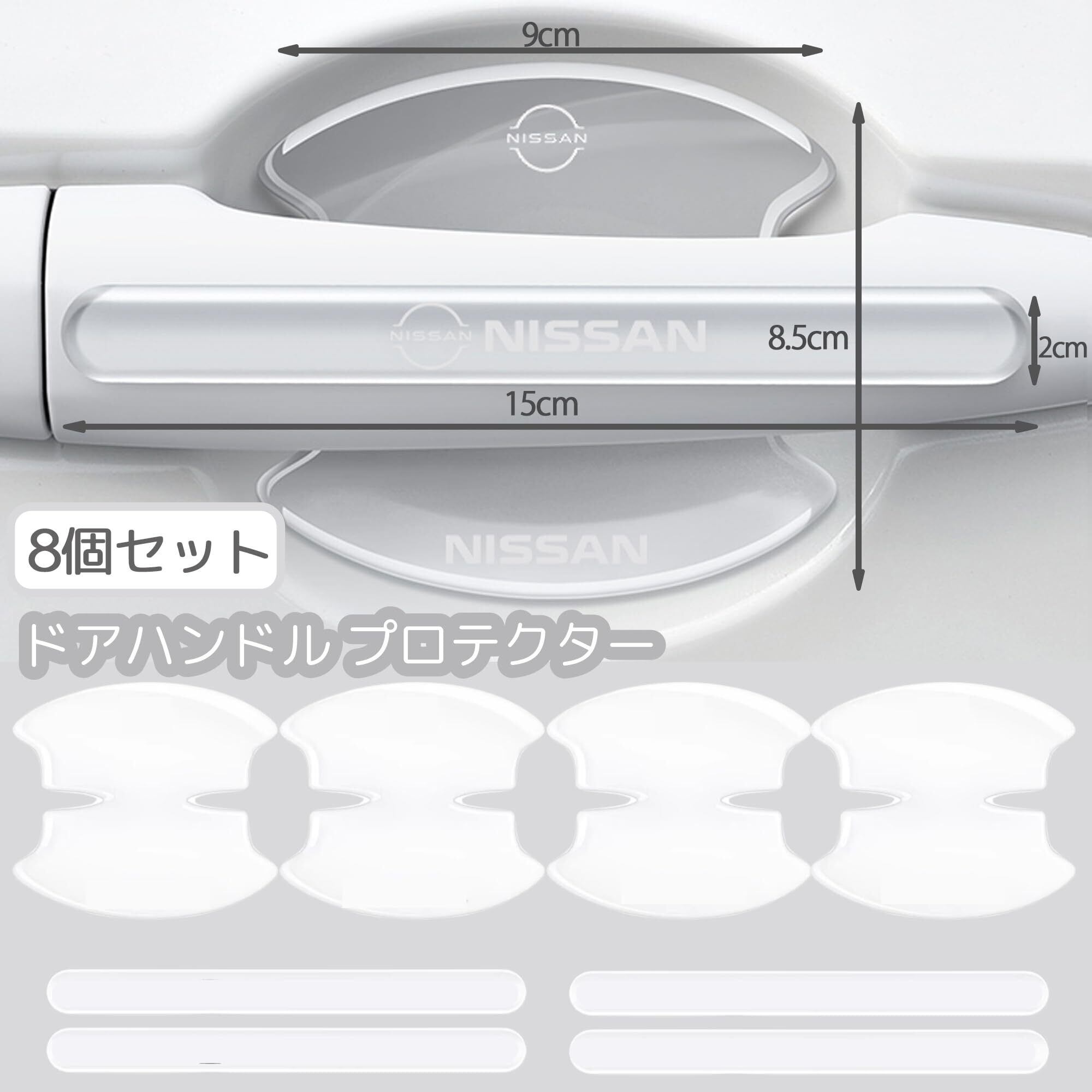 【製品仕様】ニッサンに適応ドアハンドル保護器8セット(サイドドア保護板4セット+ ドアハンドル保護器4セット) 色:透明。ドアハンドル周辺の車体をドアのスクラッチから保護します!