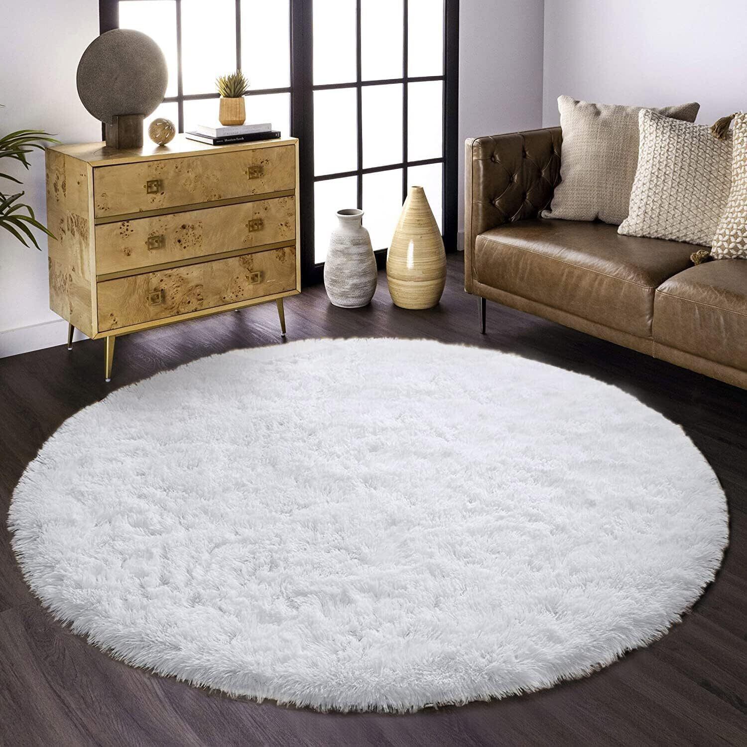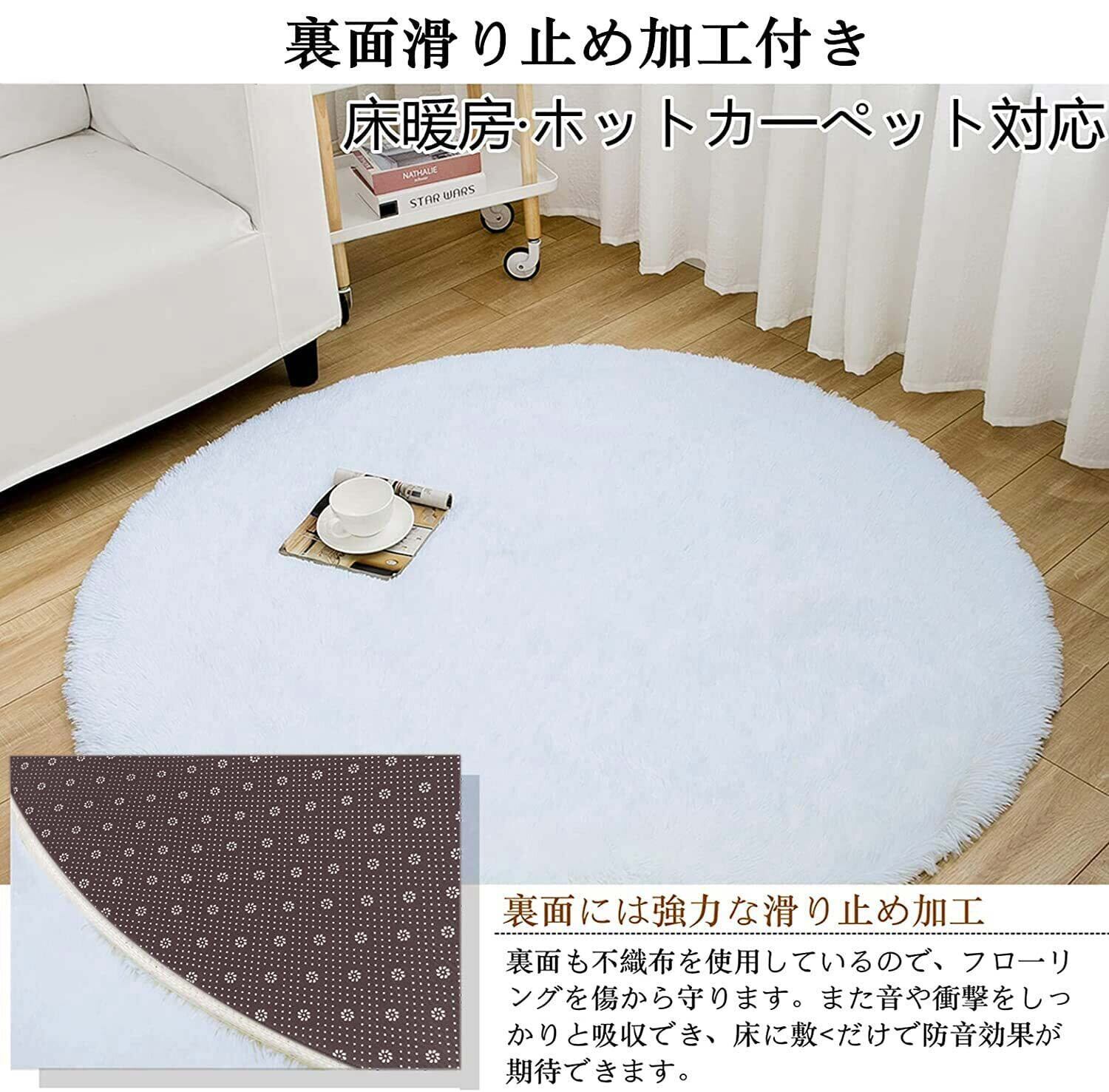 Kinganda ラグマット カーペット 丸型 円形 140cm 白 ラグ ふわふわ 洗える 北欧 滑り止め付き シャギー 防ダニ 消臭 抗菌 オールシーズン ホワイト
