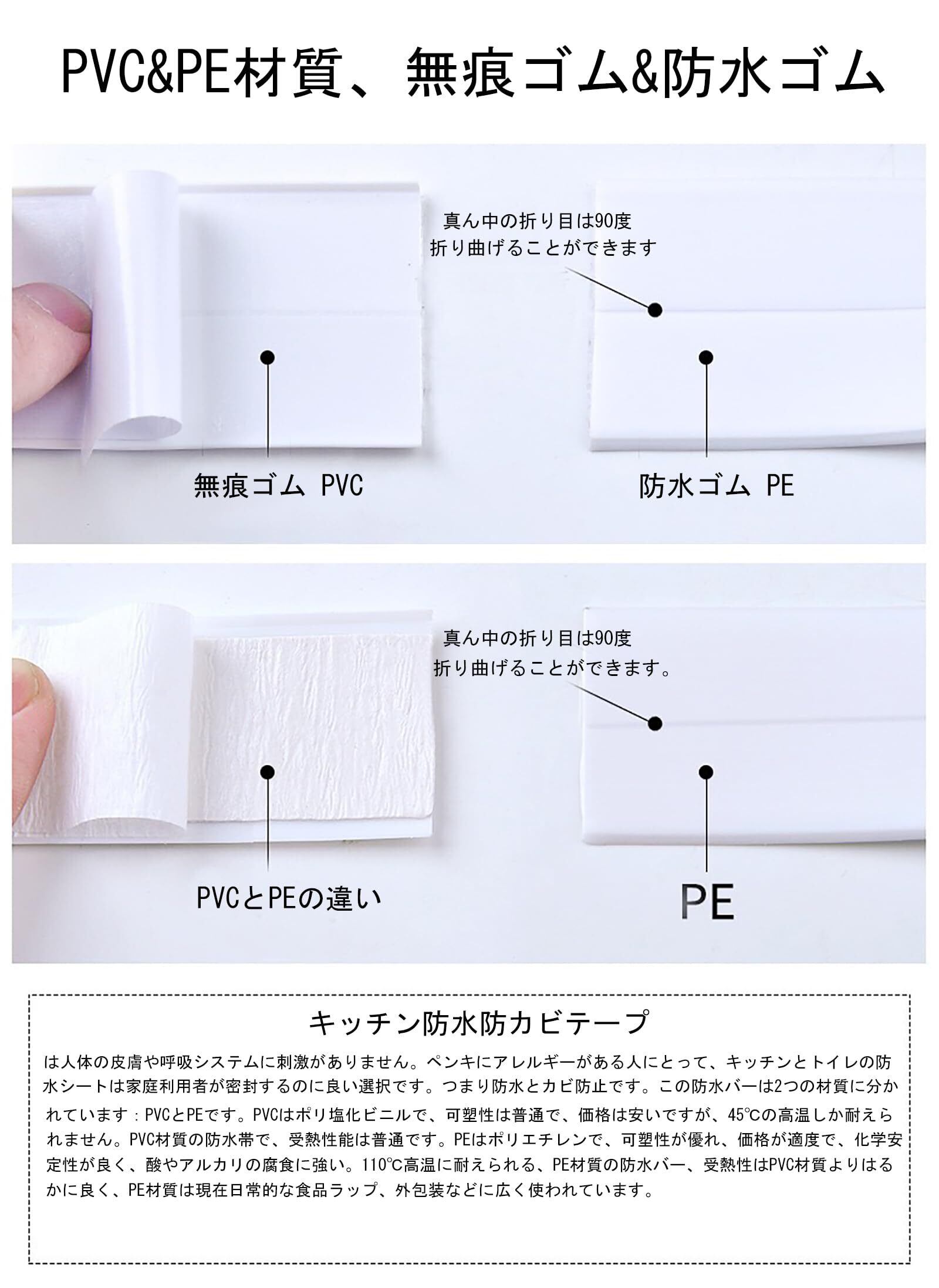防水テープ:防カビテープは優れた接着性、安定性を持っています。ガラスやタイルに貼ることができます。また、優れたカビ防止機能がついており、カビが生えやすいところも目覚ましい効果があります。隅々の水、汚れ、カビ、ほこりなどを防ぎ、浴室やキッチンのカビによる悩みを解決でき、とても安心です。