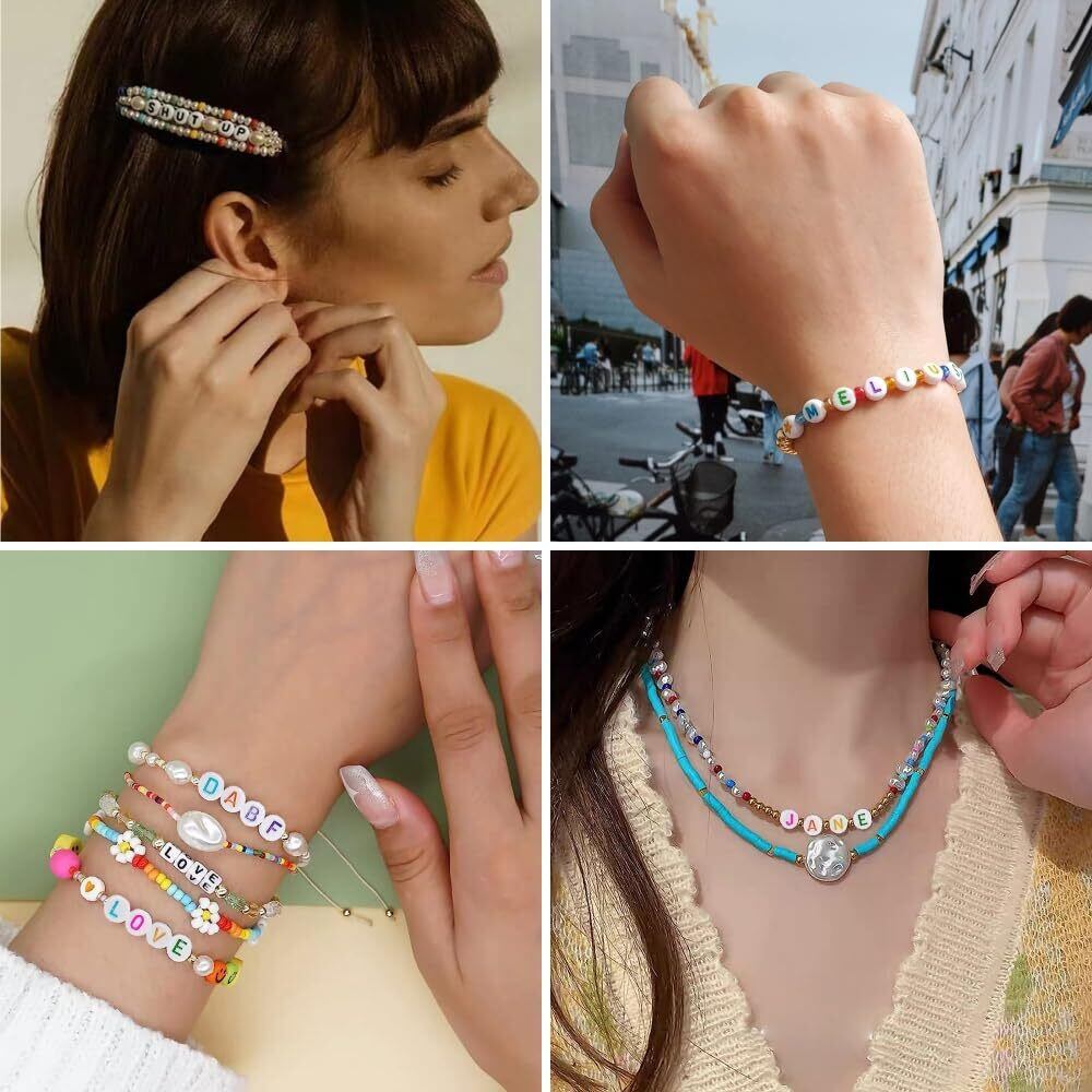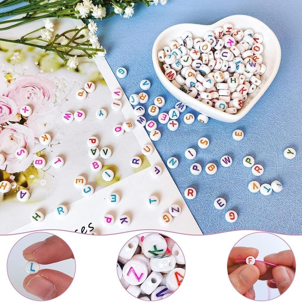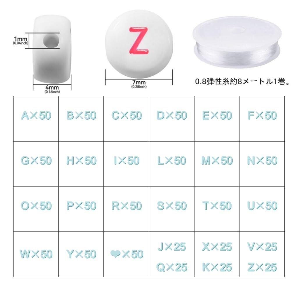 【パッケージ内容】ハート型のパターン50個、A-B-C-D-E-F-G-H-I-L-M-N-O-P-R-S-T-U-W-Y文字につき50個、J-Q-X-K-V-Z文字につき25個、合計1200文字のビーズ。0.8弾性糸約8メートル1巻。
