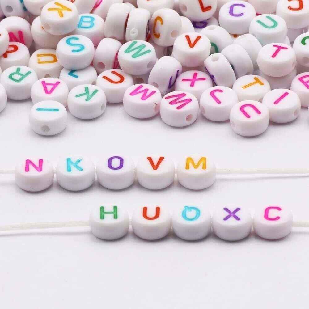 【カラフル】パーツに描かれている英字が黒色、レッド、ブルー、パープルなどカラフルで可愛い!お子様の様々な能力に役立つ、考えながら手を動かしてオリジナルのビーズアクセサリーを作ることで。
