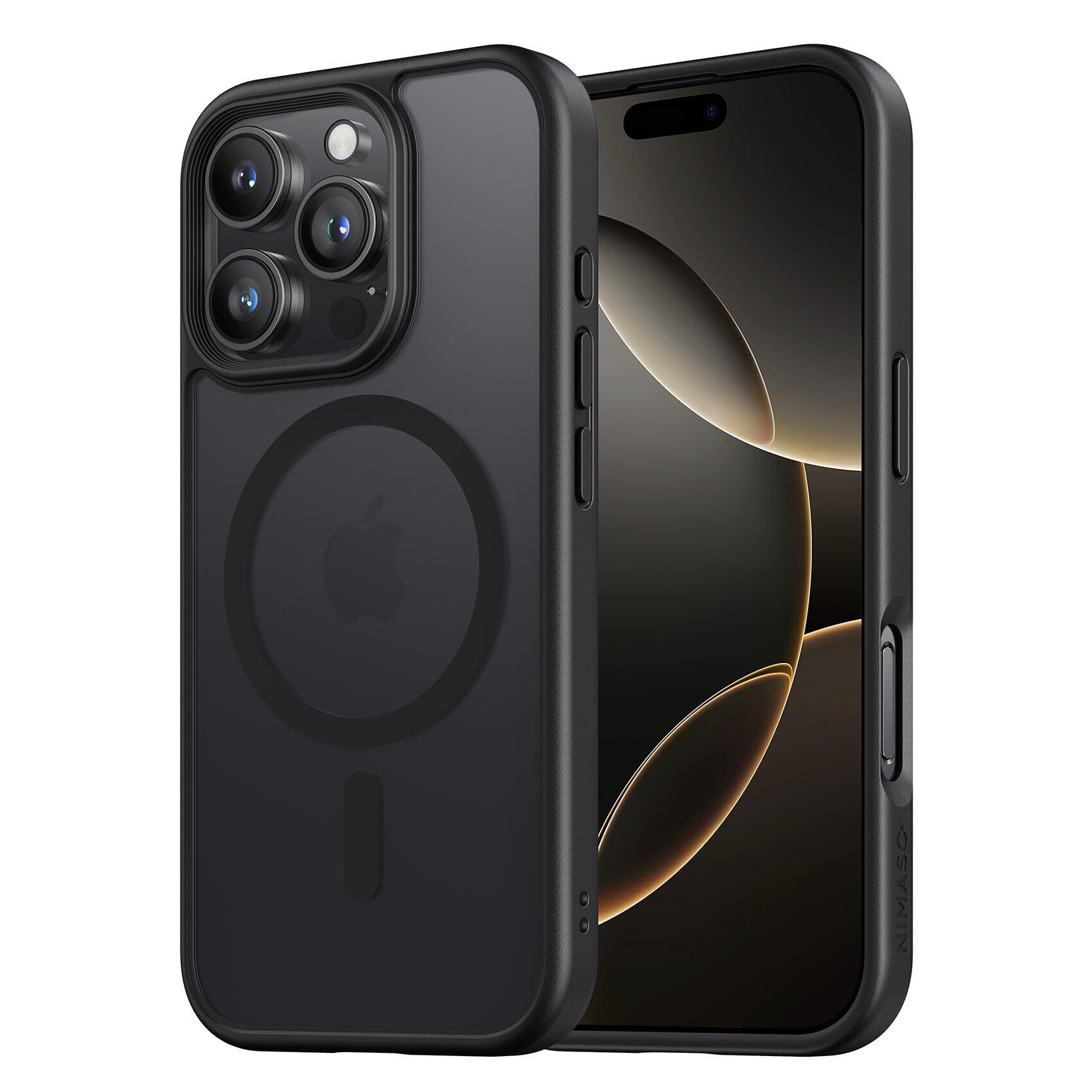 NIMASO iPhone 16 Pro 用 ケース MagSafe対応 スマホケース マグセーフ対応 カバー 滑り止め マット仕上げ 全面保護 いPhone16 Pro 対応 耐衝撃 米軍MIL規格取得 ワイヤレス充電 ストラップホール付き 携帯スマホケース アイフォン16プロ対応 (6.3インチ) ブラック (黒羽シリーズ)NSC24G1450