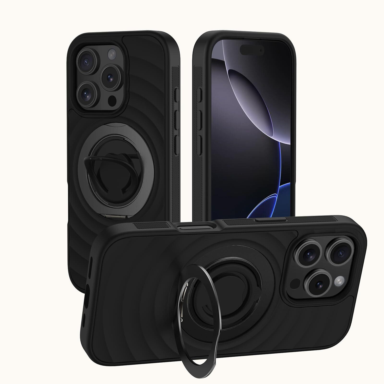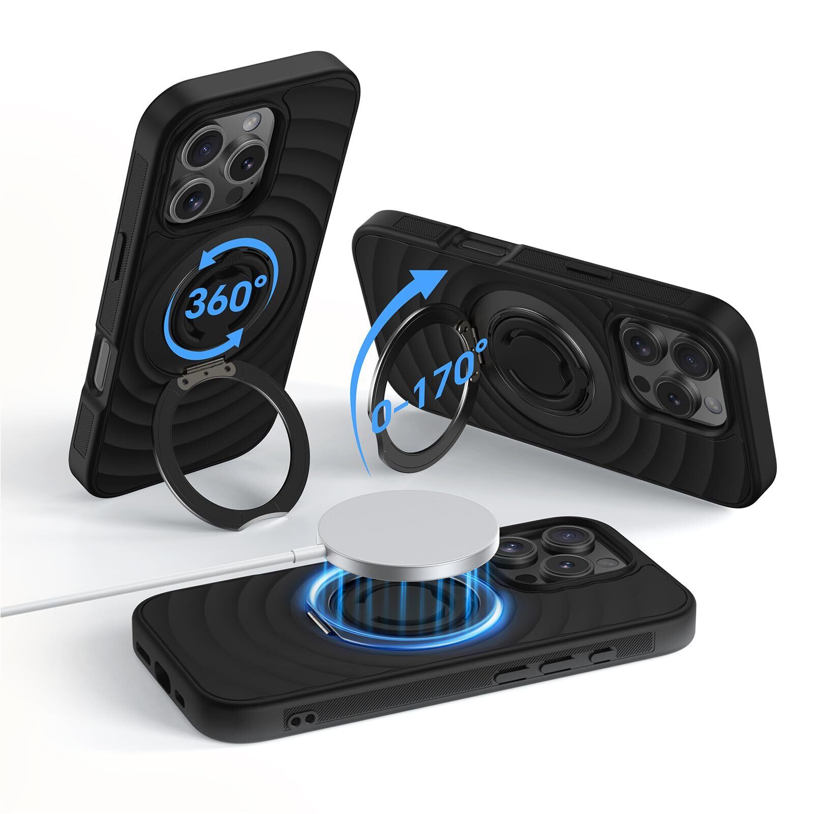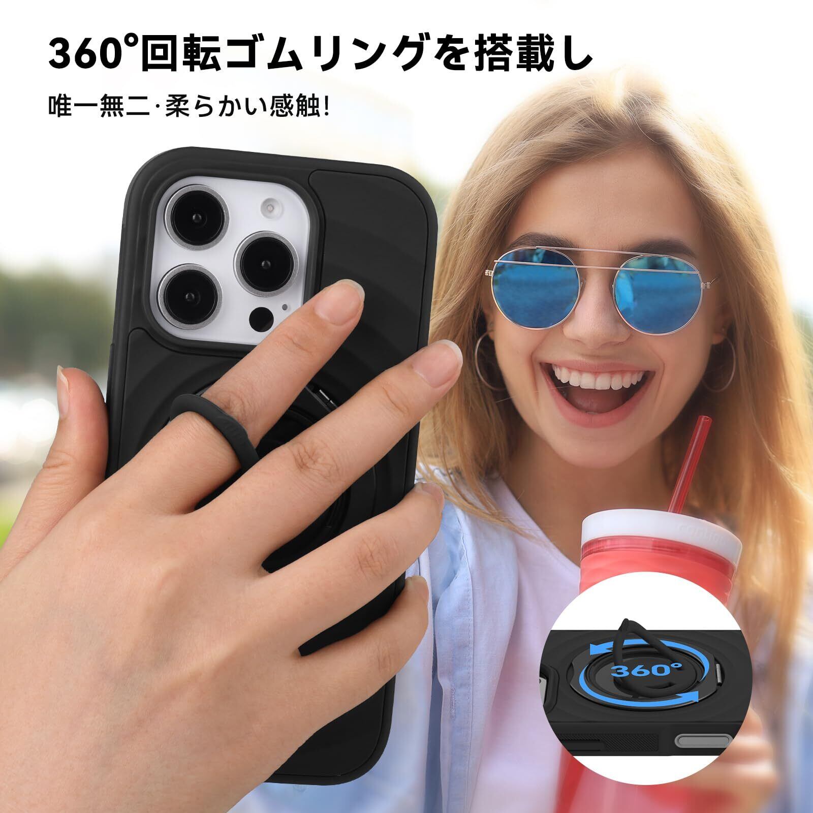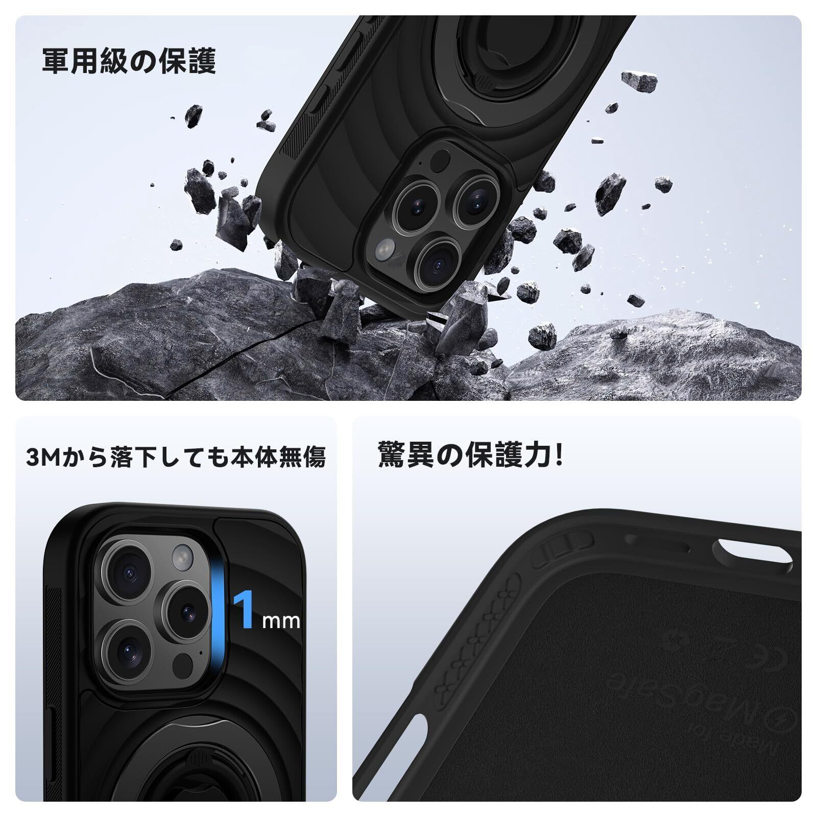 【2024最高傑作・極上のプレミアム感】 Bolvunes iPhone 16 Pro Max ケース MagSafe対応 手触り 圧倒的な保護力 【スマホリング搭載・360°回転スタンド】 米軍MIL規格耐衝撃 ワイアレス充電対応 指紋防止 縦横両対応 シックなデザインと の耐久性! (ブラック)