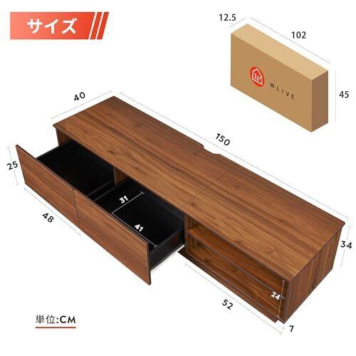 WLIVE テレビ台 テレビボード ローボード tvボード 木製 壁寄せ 幅150 奥行40 高さ33cm AV機器対応 棚付き 引出付き 隠す収納スペース ブラウン