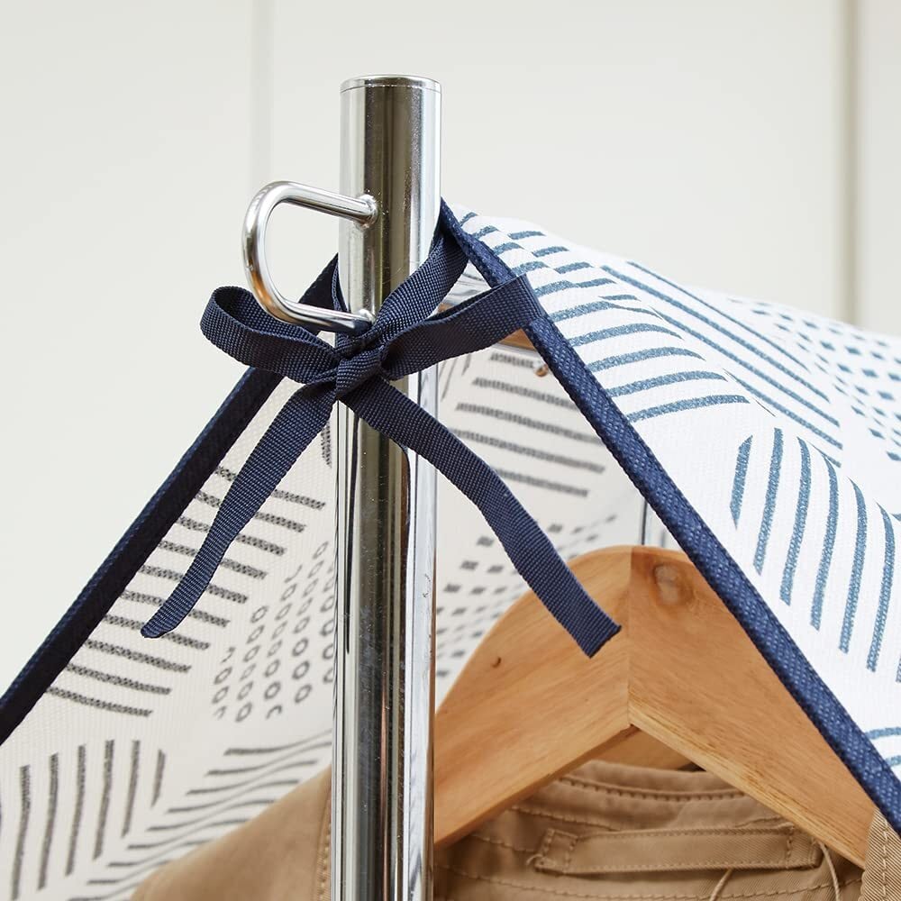 【固定用ヒモ付き】両端に固定用ヒモが付いてるので、ハンガーラックのパイプに結ぶことでカバーのズレを防止してくれます。