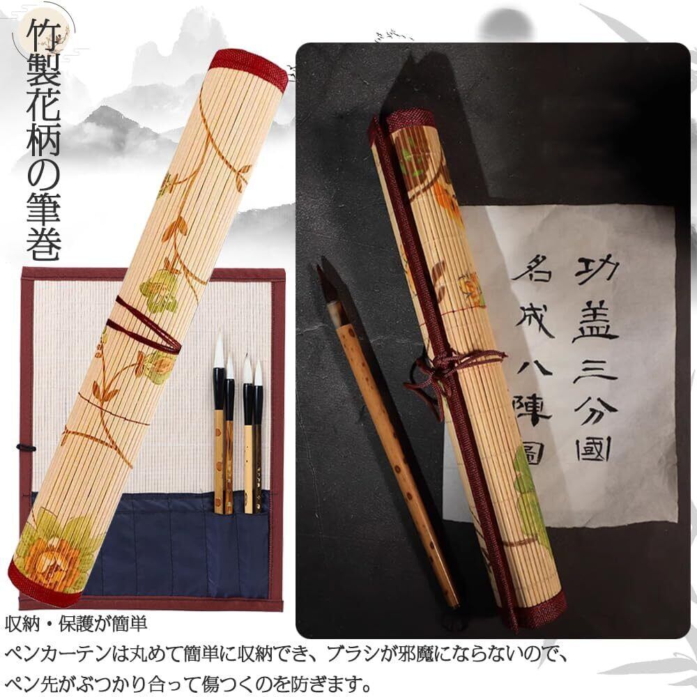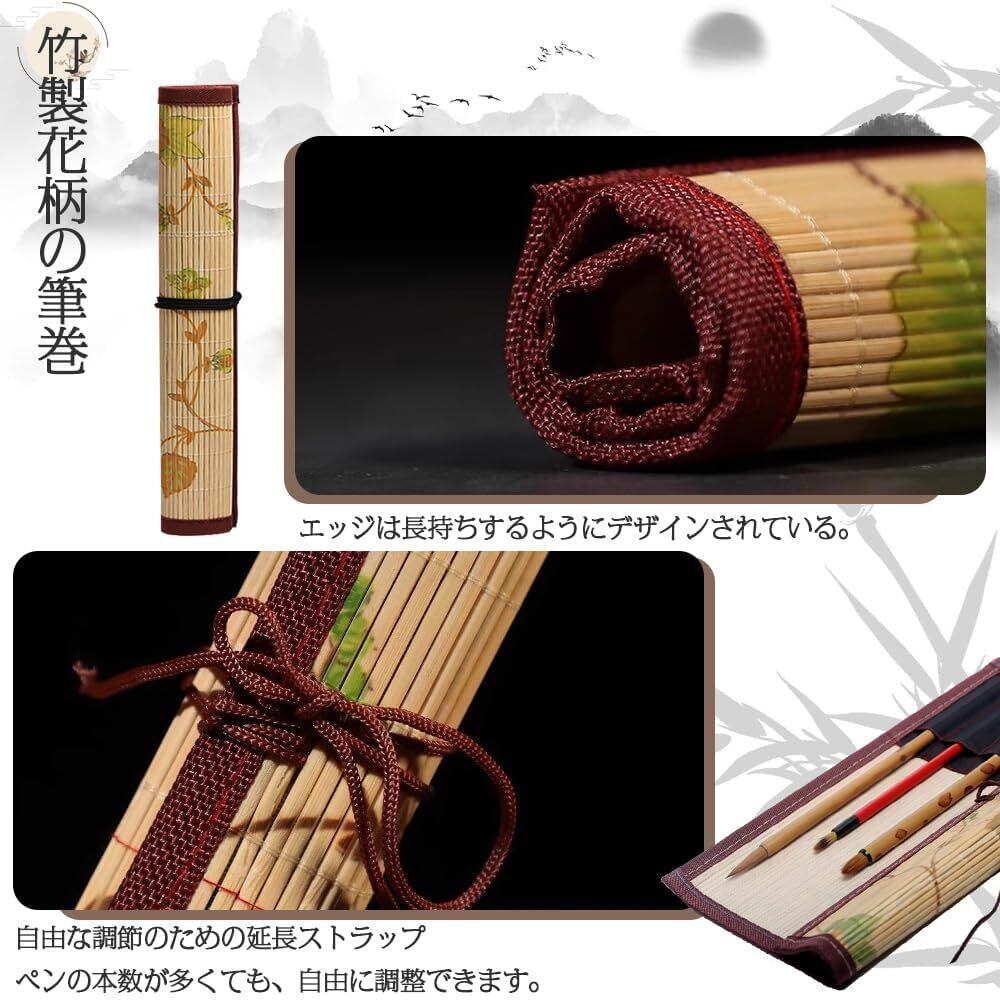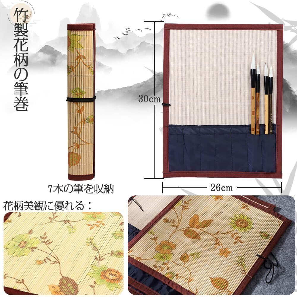 セット内容:竹製花柄の筆巻1本セット;7本の筆を収納可能;サイズ:30CM*26CM(書道筆は付属しておりません。あらかじめご了承ください。モニター環境により色合いが若干異なる場合がございます。あらかじめご了承ください。)