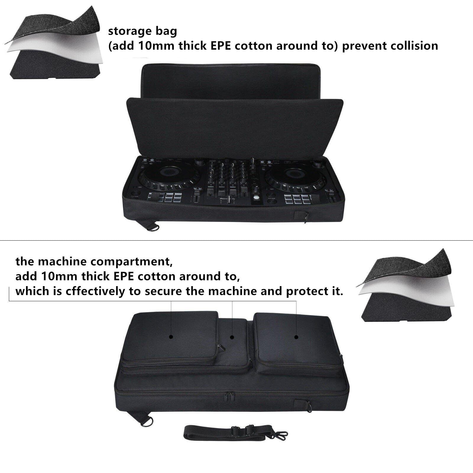 Folpus DJコントローラー収納バッグ スーツケース ショルダーストラップ付き DDJ-FLX6/DDJ-SX2/SX ターンテーブルキャリングケース用 保護ケース
