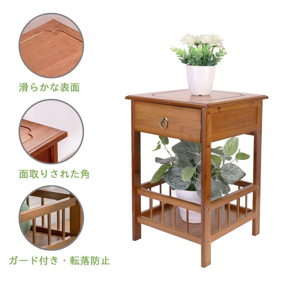 【引き出しと収納棚付き、収納性が良好です】天板と棚と引き出しというの収納スペースが付いたサイドテーブルで、リモコン・本・メガネなど散らかりがちなアイテムを収納しておけるので、ソファやベッド周りがスッキリと片付きます棚板にはガードが付き、本や漫画などもおしゃれに収納することが可能です