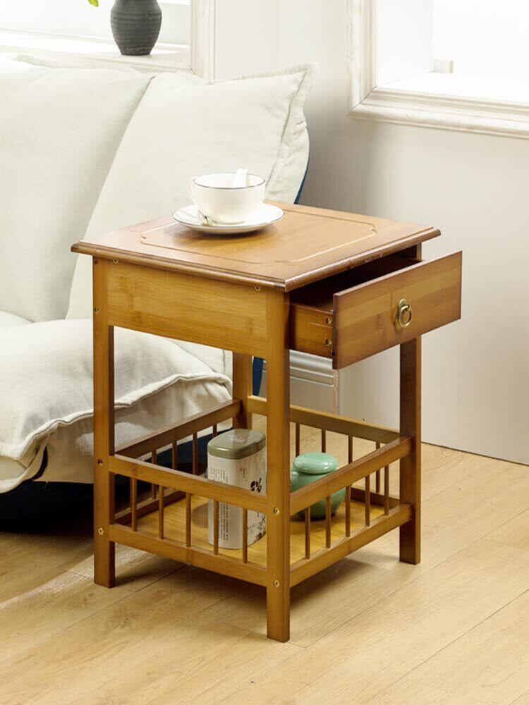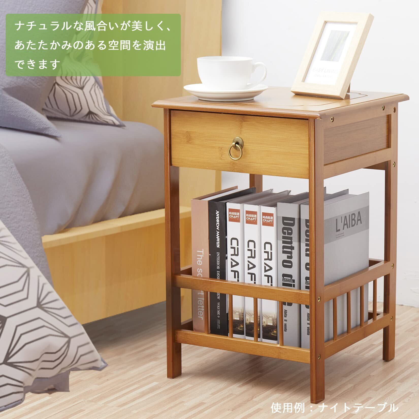 【木の素材感あふれるナチュラルなデザイン】空間に馴染みやすい天然竹製のサイドテーブルで、ナチュラルな風合いが美しく、あたたかみのある空間を演出可能です。表面もニスが施されたので、水や傷に強くお手入れも簡単で、キレイな状態で長く使い続けられます