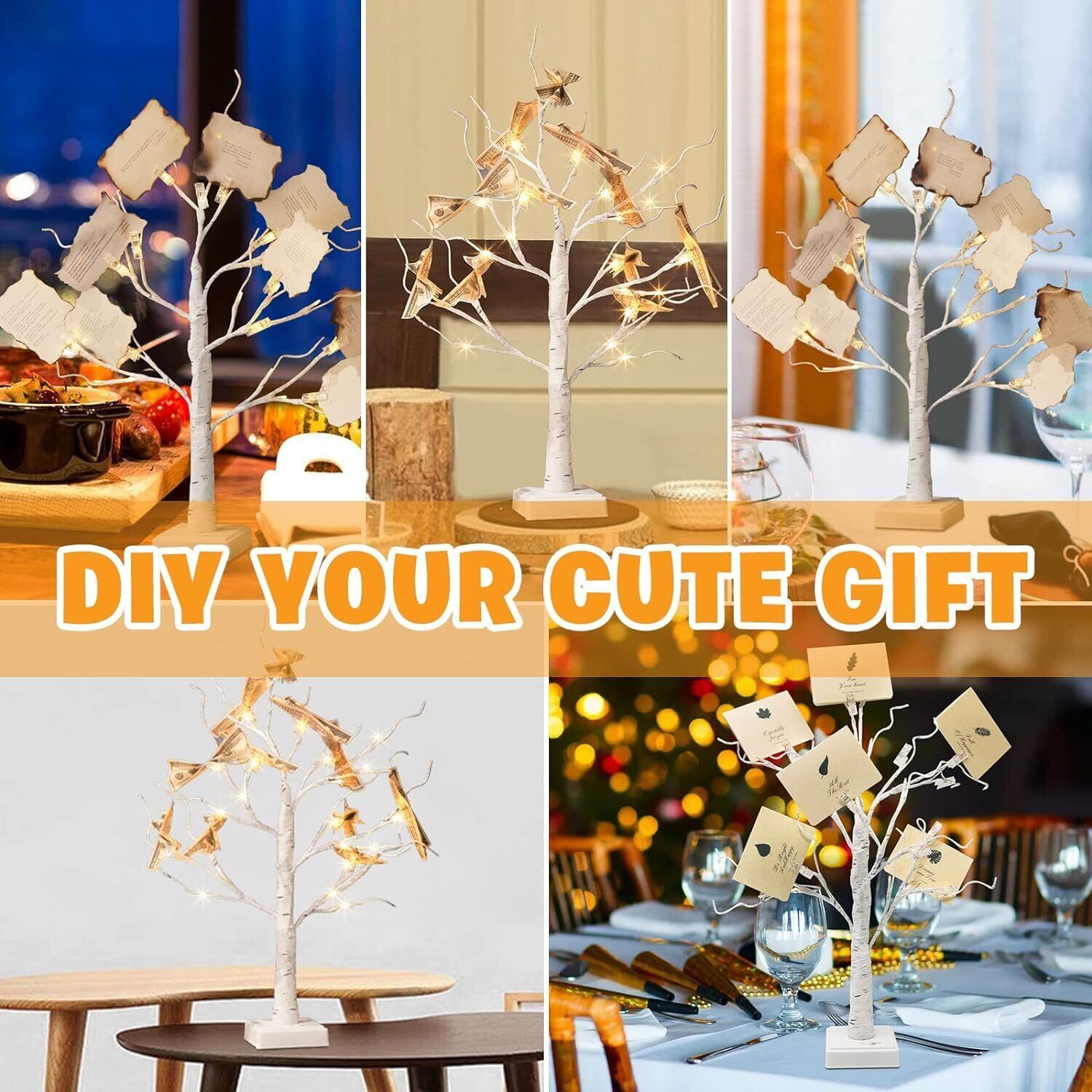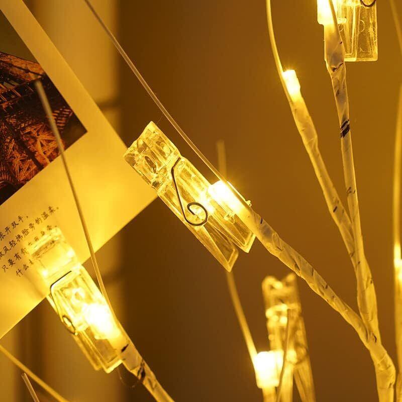 【耐久性のある高品質素材】---曲げられる枝を備えた24個のLEDライトを備えた屋内白樺ツリーライトは、お好みのDIY形状に設計できます。 また、クリップを使用して、ミニギフトカード、手紙、メモ、紙、宝くじ、チケット、現金、ドル、写真、メモなどを表示できます。 さらに、卓上ツリーライトは耐久性があり、低熱なので、点灯中に触れても安全です。 一年中使用できる、春、夏、秋、冬のホリデーデコレーションコレクションに欠かせないアイテムです。