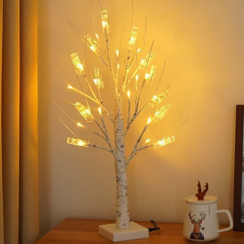 Lecone LED ツリーライト クリップ12個付き 24LEDライト ブランチツリー 白樺 卓上 クリスマスツリー 白 USB/乾電池給電式 おしゃれDIY 置く型 和風 常夜灯 寝室用 パーティー 結婚式 バレンタイン 飾り 屋内装飾ライト 卒業祝い/誕生日 プレゼント ギフト