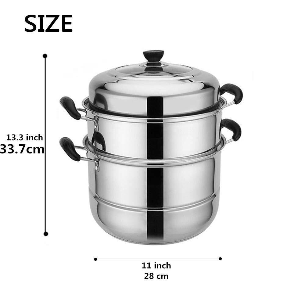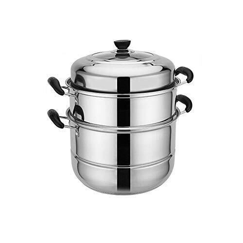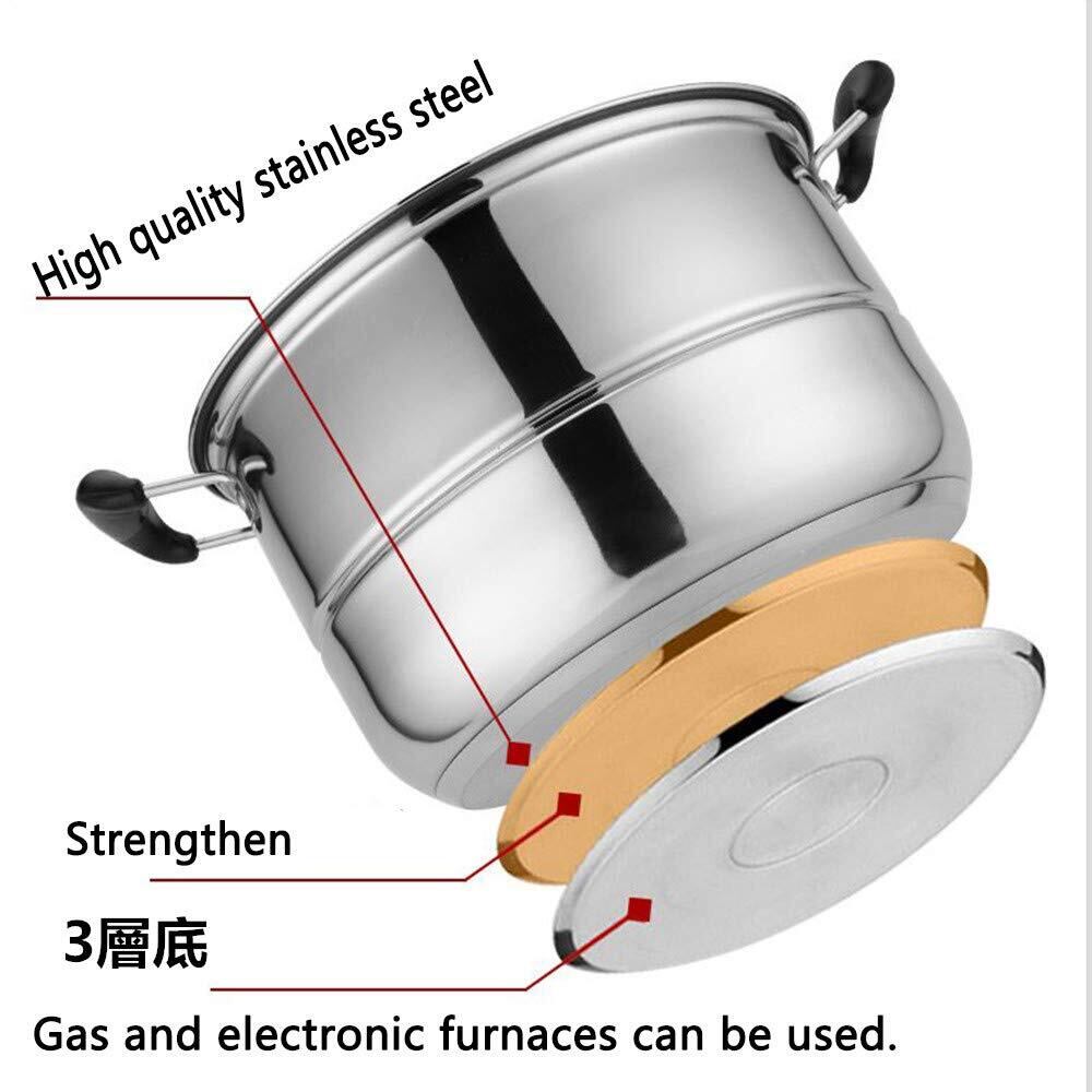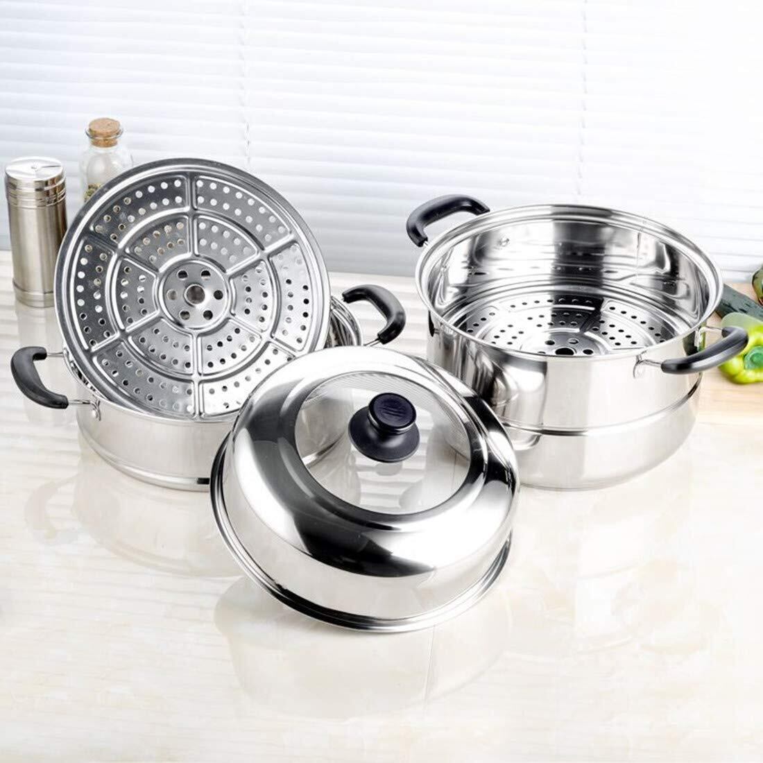 Minsell 【SGS認証済み】蒸しもの鍋 「3層底」満菜 二段 三段 蒸し器 対応熱源:IH対応 各種熱源対応 三つサイズ ガラス鍋蓋付 ステンレス (28センチメートル)