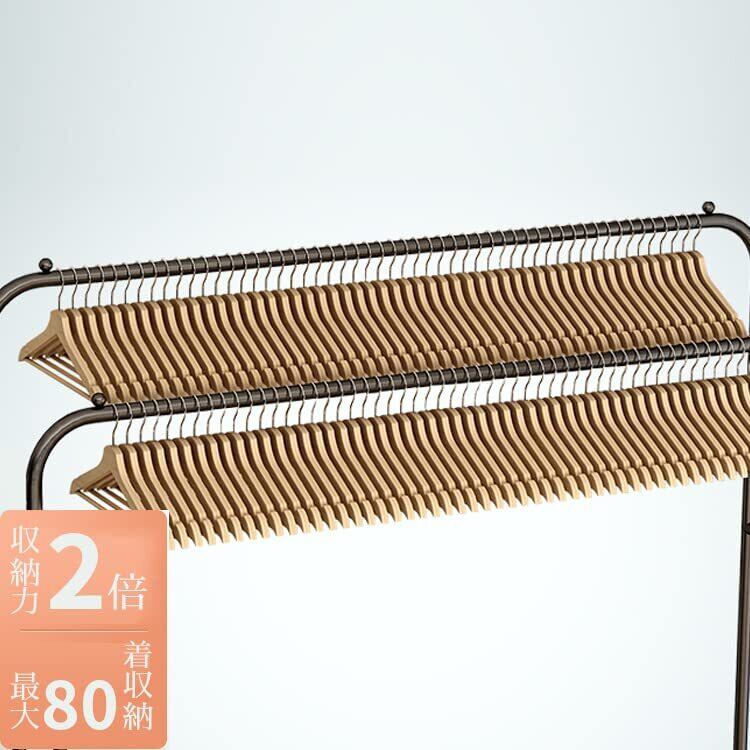 【ダブルタイプ設計】高さが異なる2本のバーを備えた、便利なダブルタイプのハンガーラックです。高さは短いバーが128cm、高いバーが148cmで、長いコートと短いシャツなどをきれいに整理して収納できます。