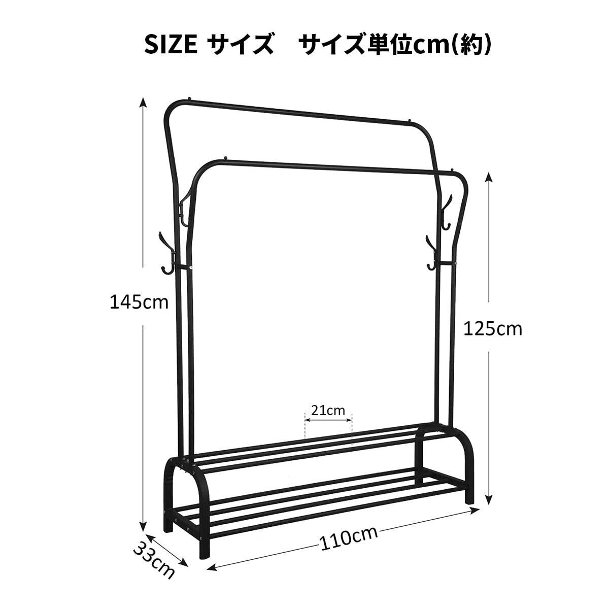 【製品仕様】 商品サイズ:幅110cm×奥行33cm×高さ148cm/ 製品重量:4.76KG / 主要材質:メタル、カラー:ブラック・ホワイト 耐荷重は30kgで、大量の洋服を収納できます。