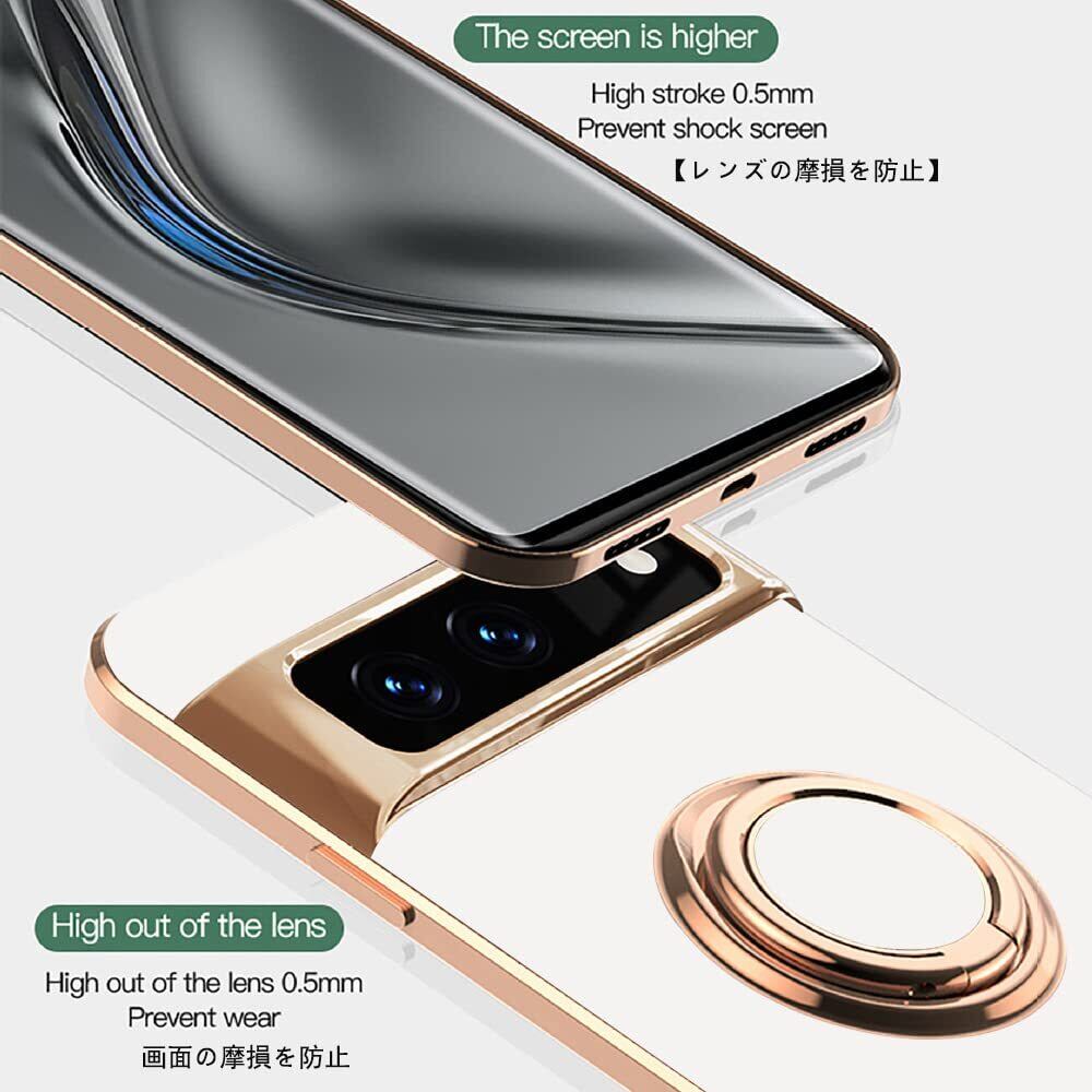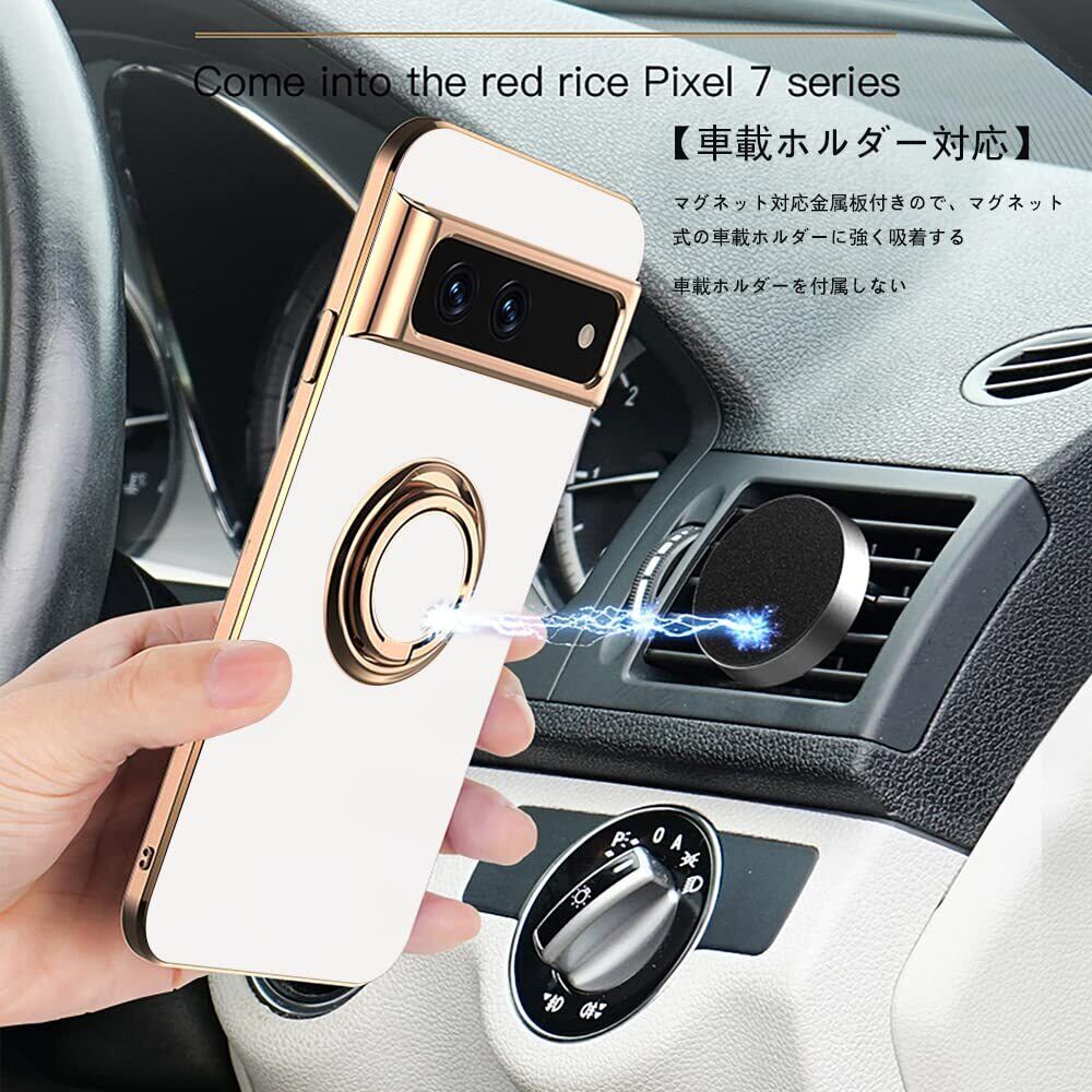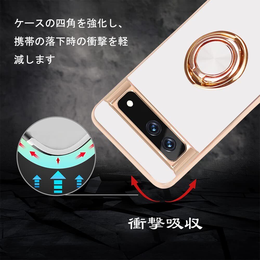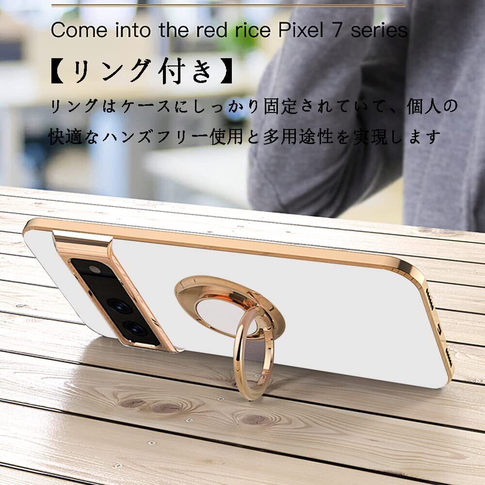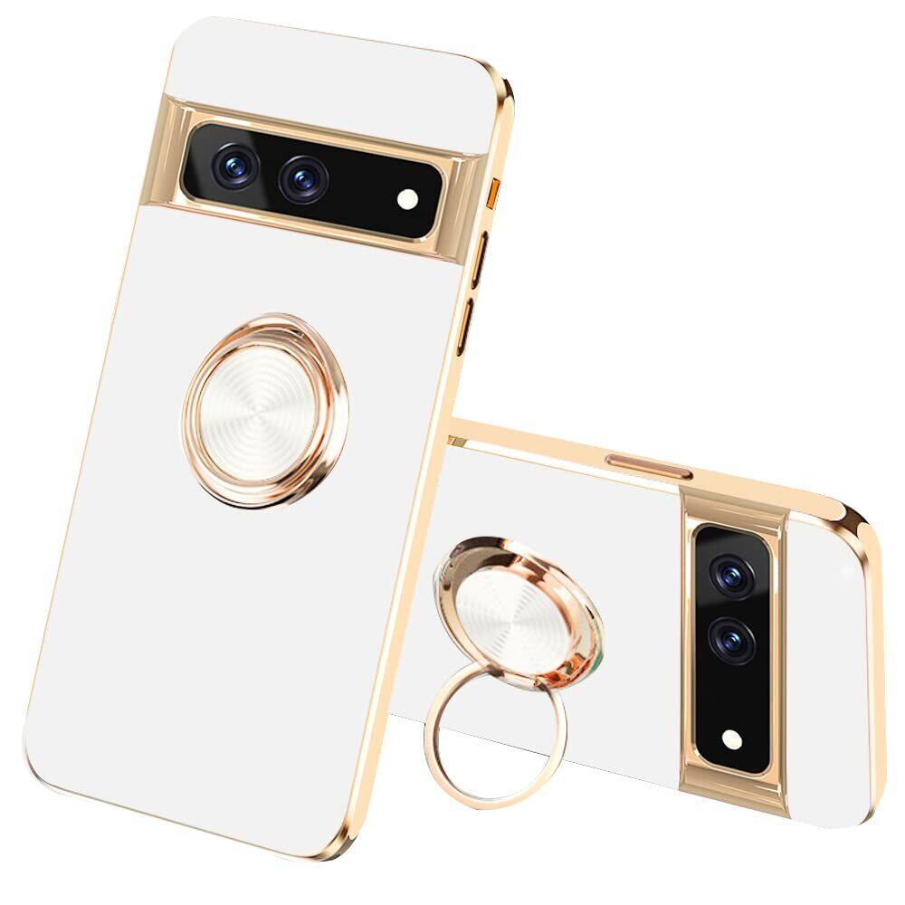 JOOBOY Google Pixel 7 ケース リング付き Pixel7 カバー メッキ加工 レンズ保護 tpu ソフト ストラップホール付き 耐衝撃 スリム おしゃれ スマホケース 携帯カバー グーグルPixel 7 メッキ加工 カバー (Google Pixel 7, はくしょく)
