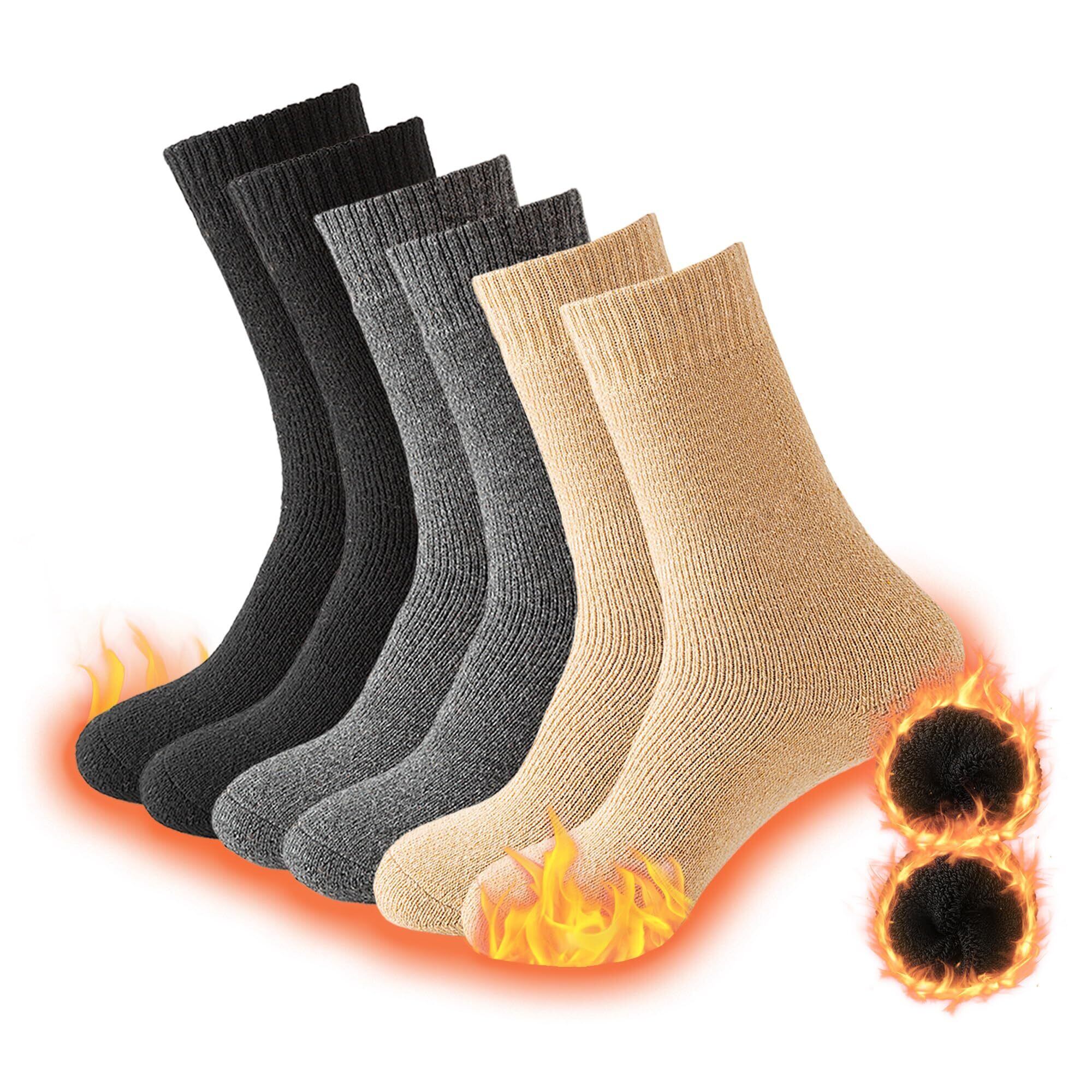 [FESIMNUCV] 靴下 メンズ 冬用ウールソックス男女兼用厚手、【零下防寒、極暖38℃恒温、ウール素材】、ウールストッキング、360°蓄熱、超厚起毛裏地、防寒、暖かさ、耐久性、伸縮性、室内、屋外、登山、キャンプ、24-28 cmの3色セット