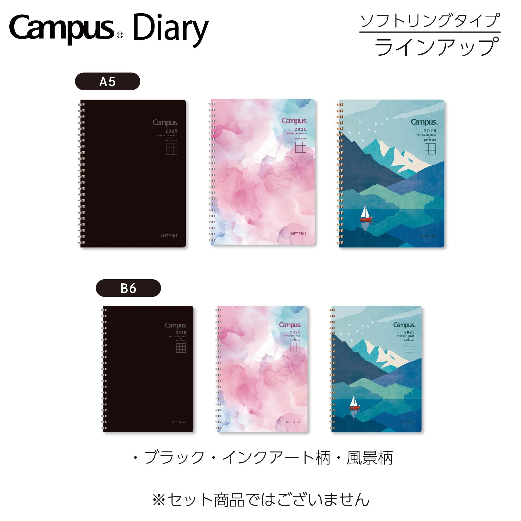 コクヨ 手帳 2025 キャンパス ソフトリング ダイアリー マンスリー ブロック A5 風景柄 ニ-SMNL2-A5-25 2024年 12月始まり