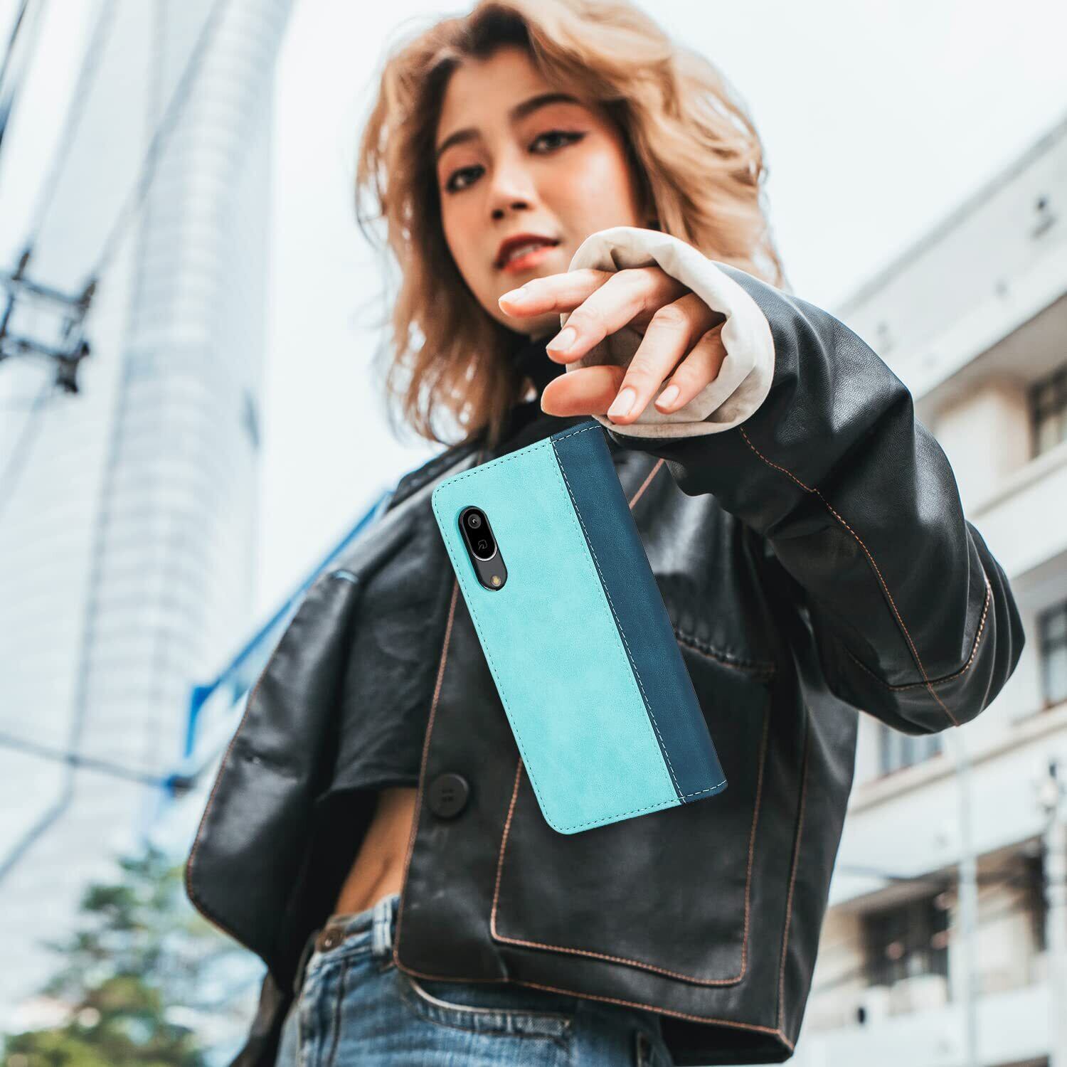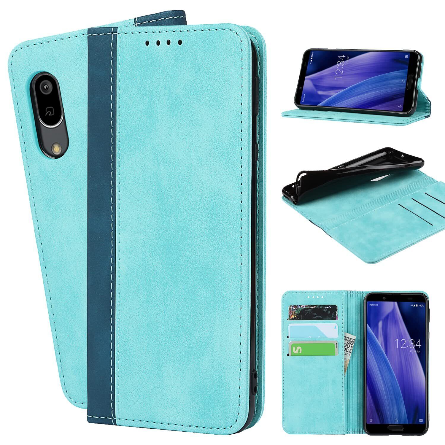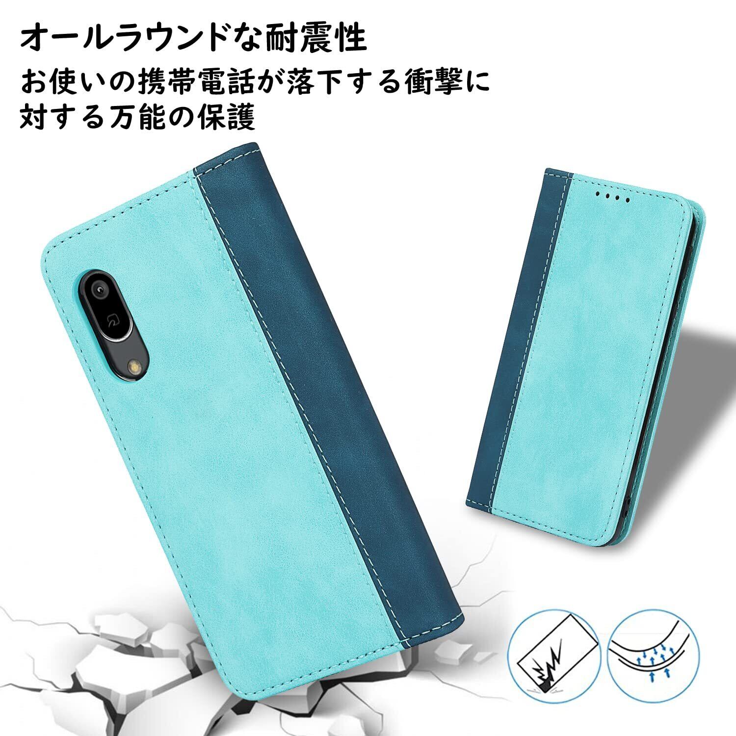 Havaya AQUOS Sense3 ケース AQUOSセンス3 ケース SH-02M ケース 手帳型 au SHV45 SHV48 耐衝撃 SH-RM12 カバー SH-M12 docomo シャープ Sharp アクオス センス3/3lite/Android One S7 SoftBank カード収納 SoftBank スタンド機能 レザー -ライトブルー+ダークブルー