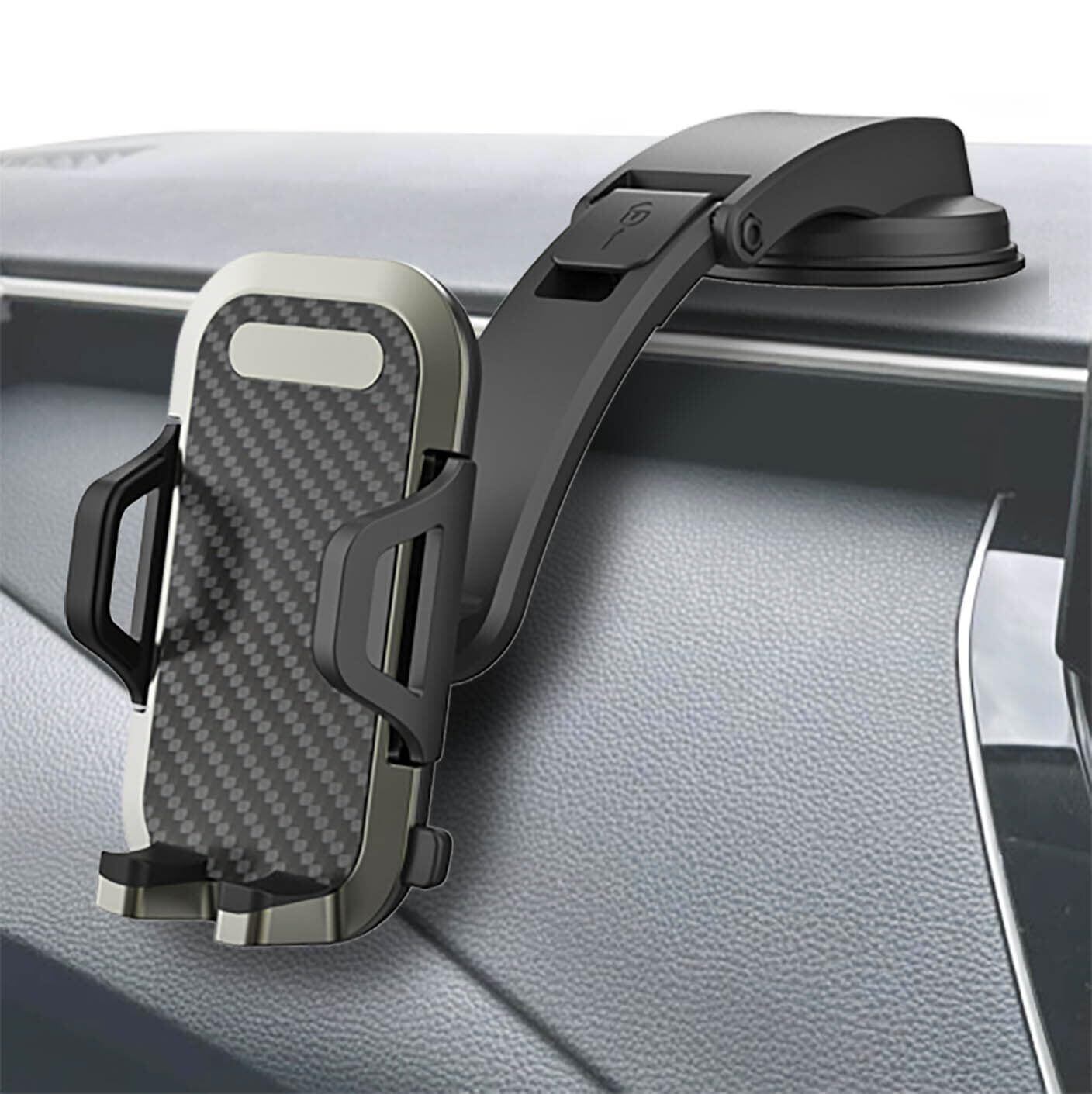 ●視界を妨げないローマウント吸盤式スマートフォンホルダー。