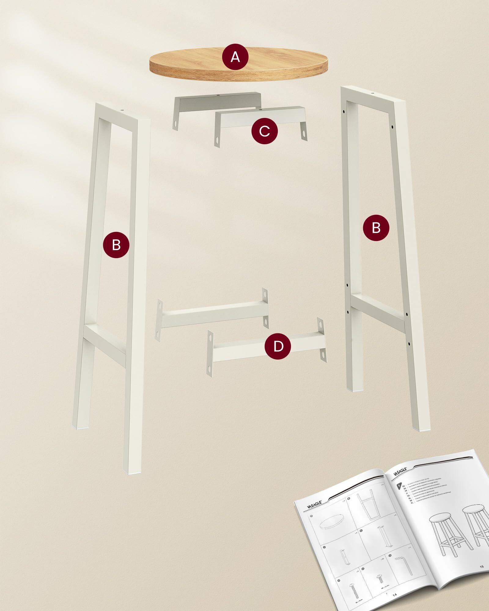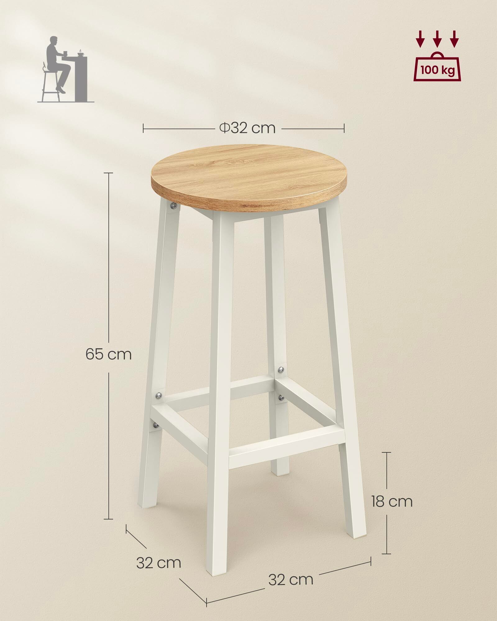 VASAGLE カウンターチェア バーチェア 2脚セット オシャレ 高さ65cm 北欧 ハイスツール NLBC032W09V1