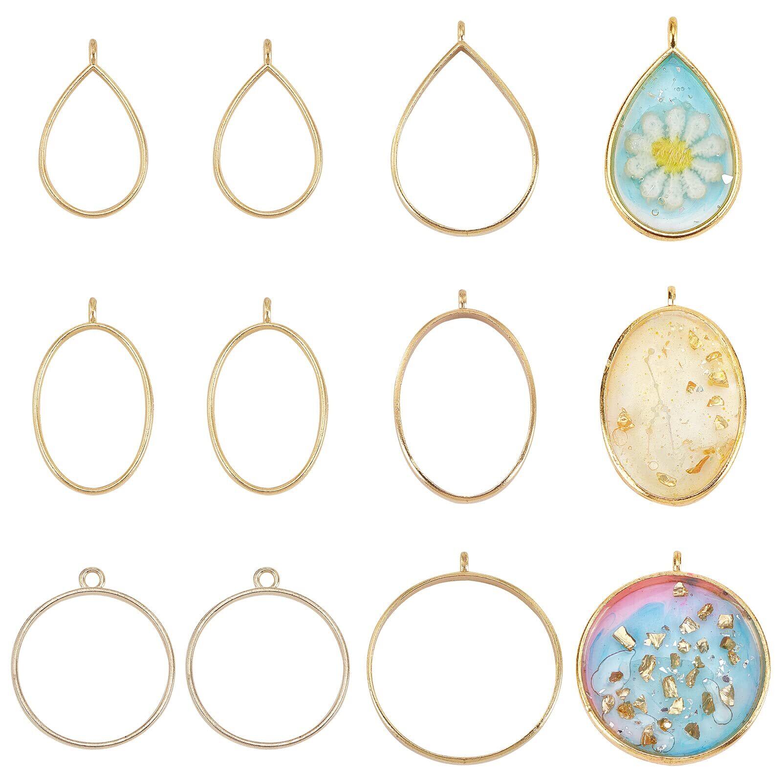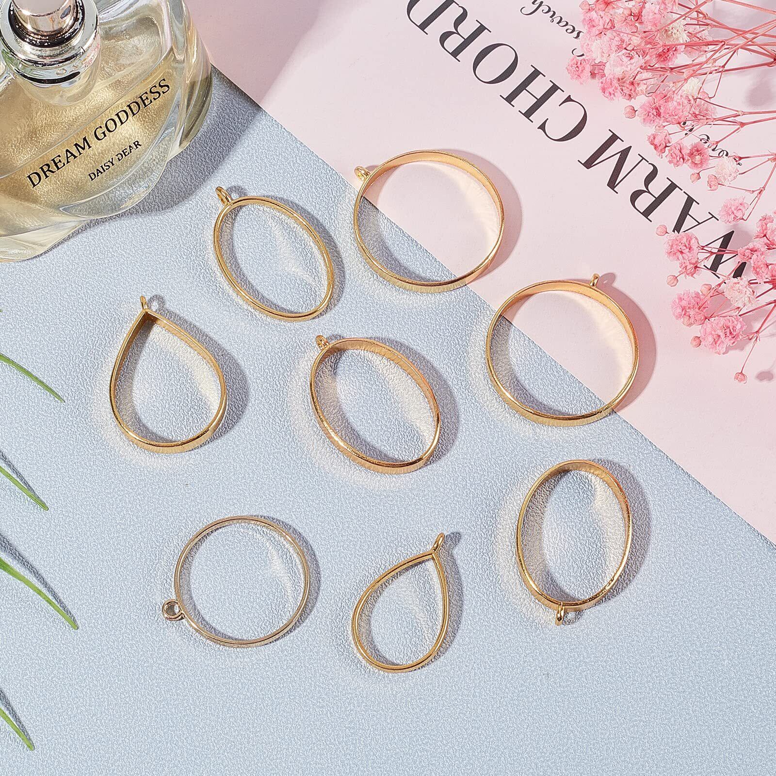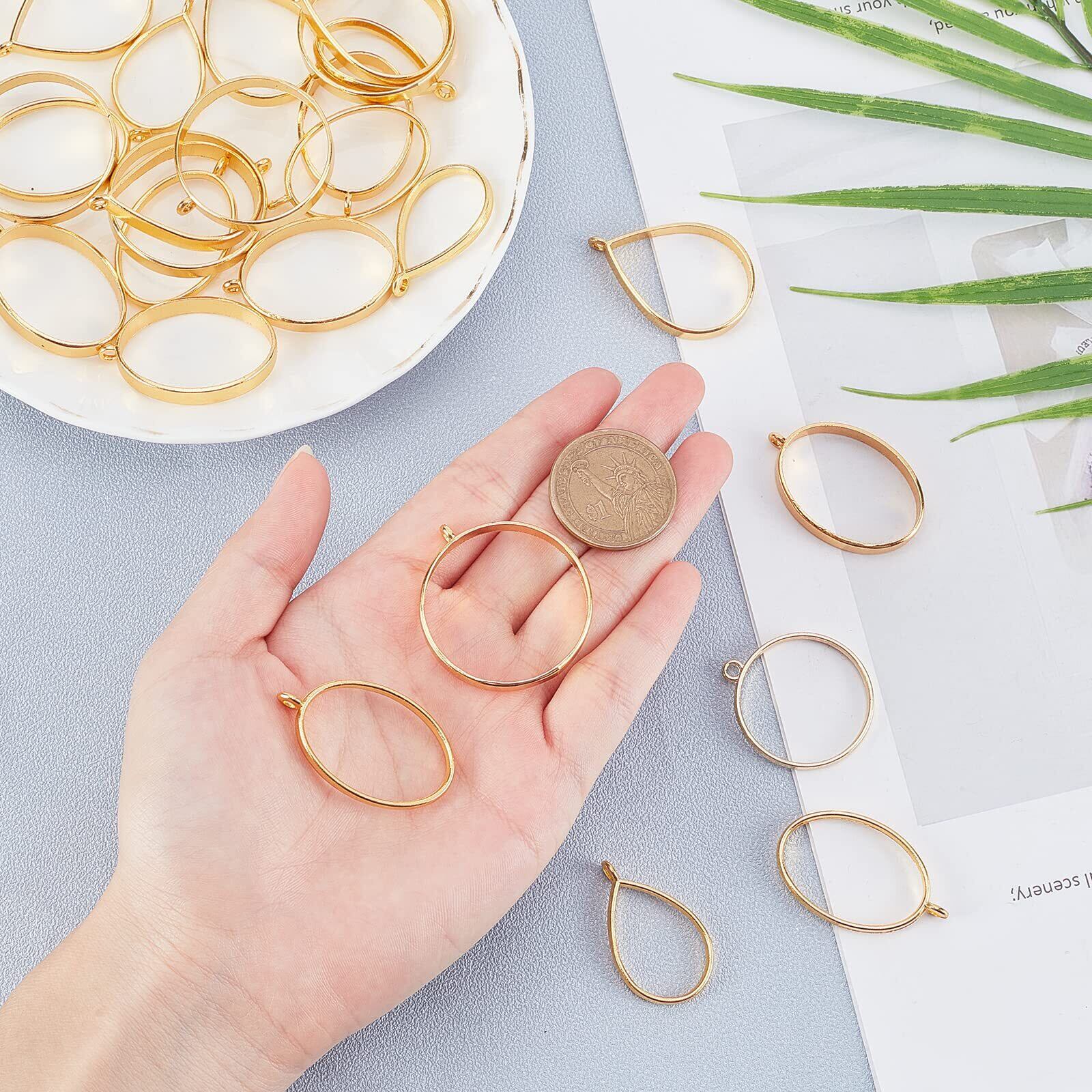 OLYCRAFT 30点 レジン枠 レジン空枠 円形 しずく形 楕円形 レジンフレーム 手作り 手芸 DIY ハンドメイド 素材 ジュエリー アクセサリー パーツ ゴールド