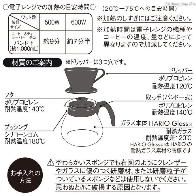 本体/耐熱ガラス、フタ・ハンドルバンド・ドリッパー/ポリプロピレン