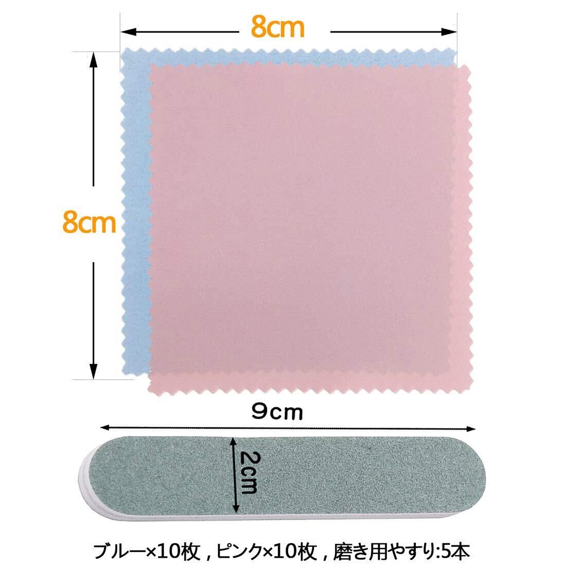 1.磨くだけで簡単にシルバーの黒ずみが落とせる!お手軽に使える3種25点セットです。クロスサイズ(1枚):約8cm×8cm,布:20枚セット(ビニル袋で個別包装なので、保管に便利です)、磨き用やすり:9cm×2cm, 5本。