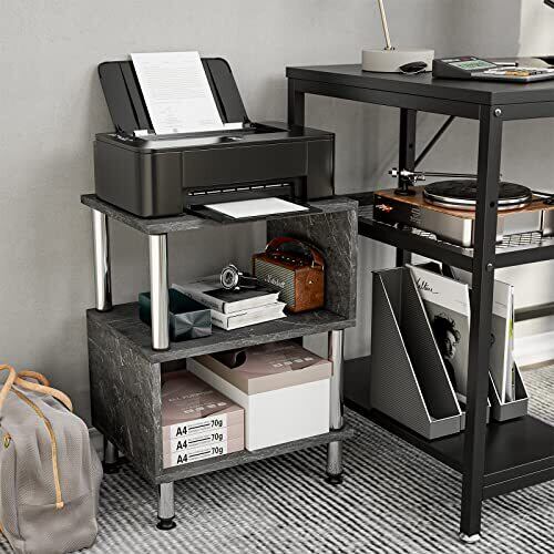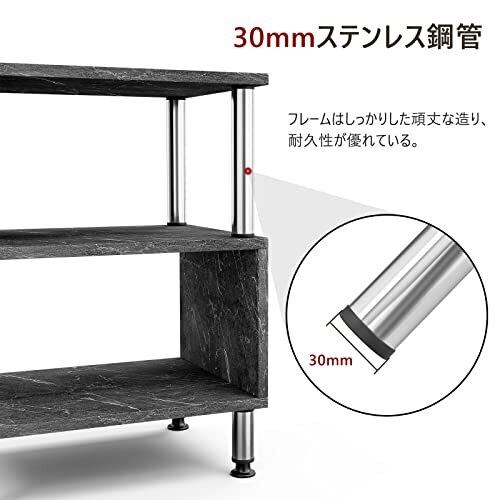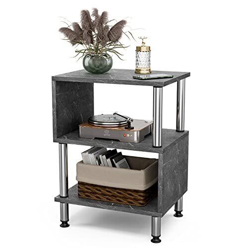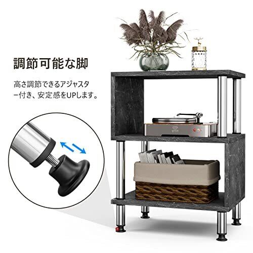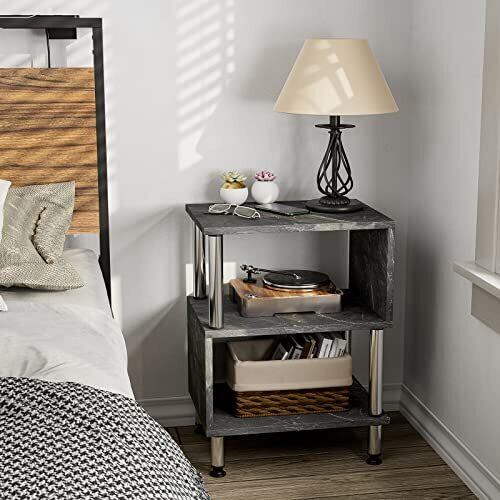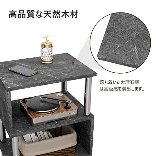 FryLR サイドテーブル おしゃれ S字ラック 40*29*51cm 木目調 大理石柄 オープンラック エンドテーブル 寝室 ソファ ベッド横 ジグザグラック 見せる収納 サイドラック 3段 収納棚(ブラック大理石柄)