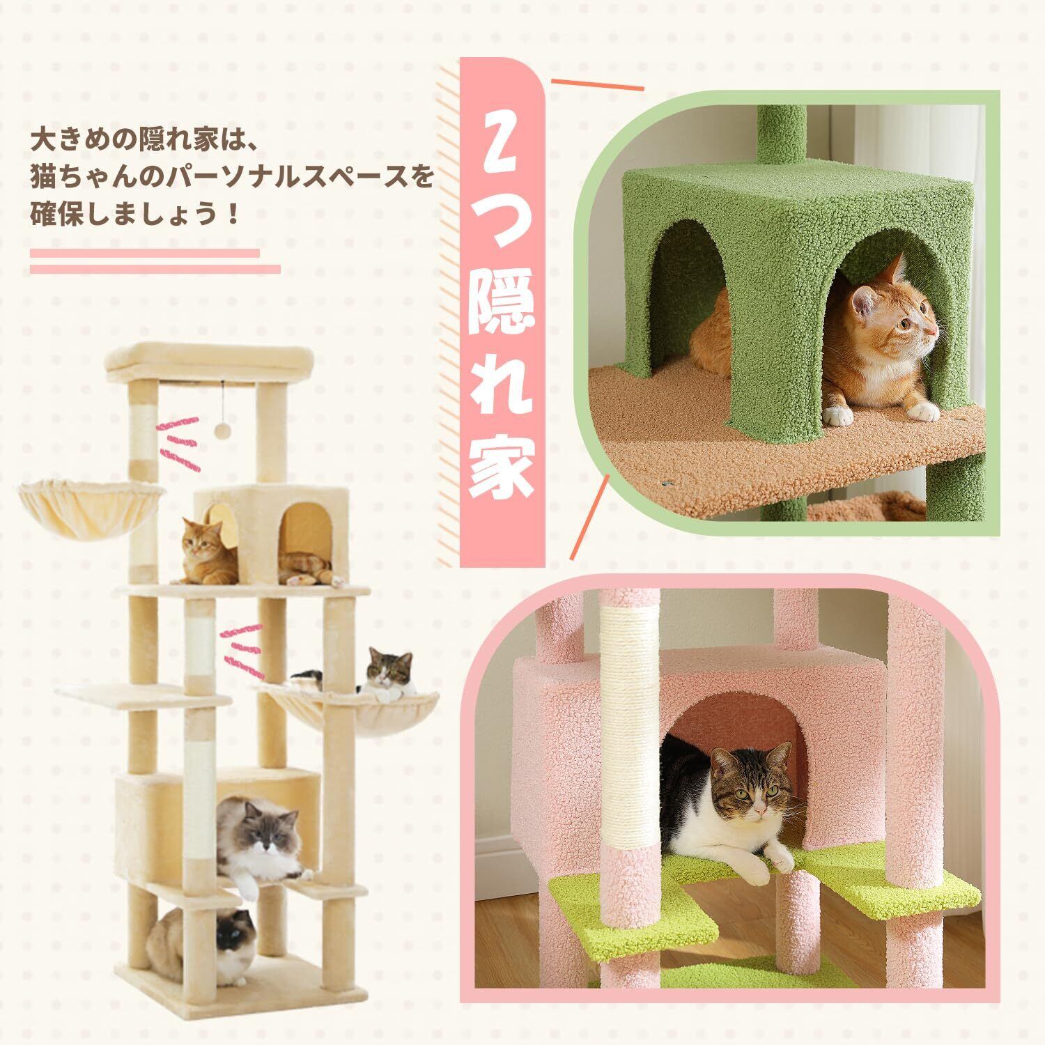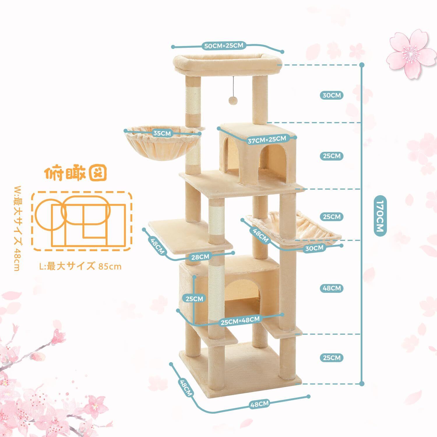 【2本で支える展望台!】高い展望台部屋中を見渡すことが大好きな猫ちゃんに!一本の柱だけでは折れるリスクが高く、猫ちゃんが危ないです、本製品は2本で支えているので、太めな猫ちゃんも、活発な猫ちゃんも大丈夫!