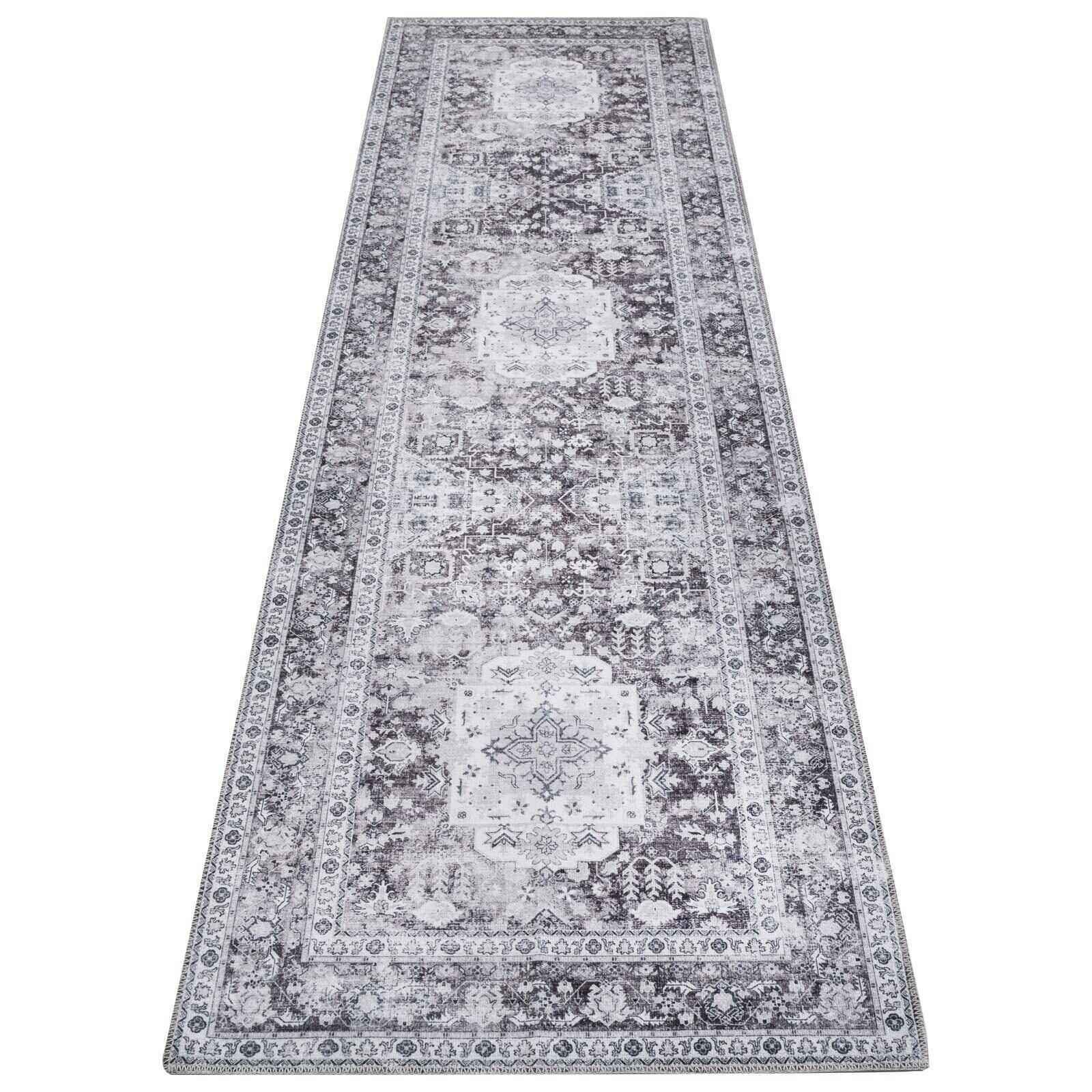 DECOMALL キッチンマット 240 洗える 台所マット おしゃれ ペルシャ風 ラグ マット 60x240CM 廊下 カーペット オールシーズン 滑り止め グレー 防ダニ 防臭 床暖房対応