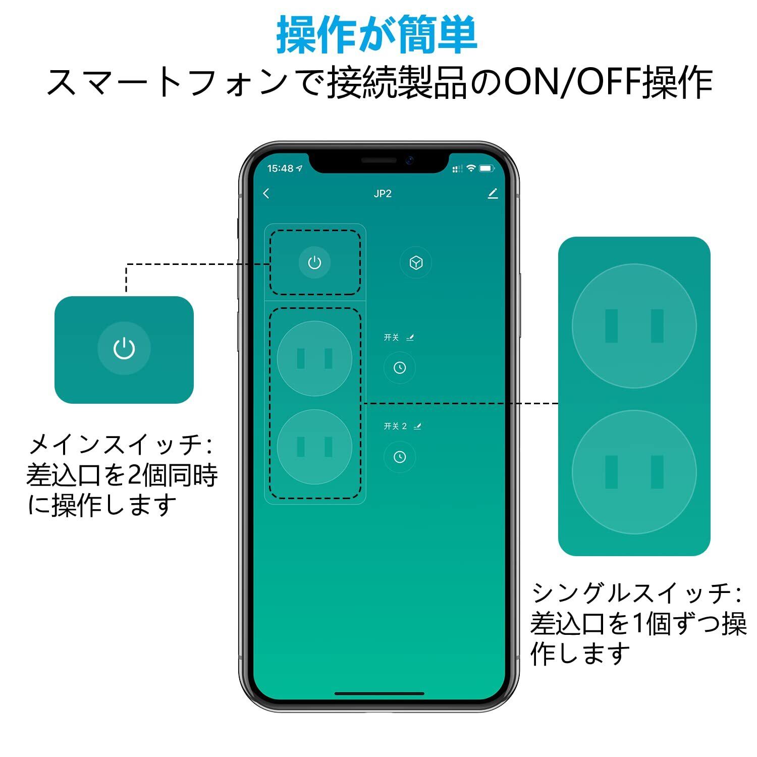 ACポート2個口タイプ Wi-Fi環境 スマートプラグ タイマー機能搭載 遠隔操作 Amazon Alexa/Google Assistant対応 ハブ不要