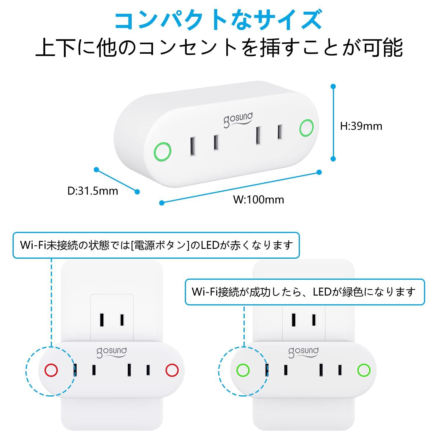 【Alexa対応】 ゴウサンド(Gosund) スマートWi-Fiコンセント Alexa Google Assistant対応 遠隔制御と音声操作 ハブ不要 2口ACプラグ コンセントタイマー機能付き JP2