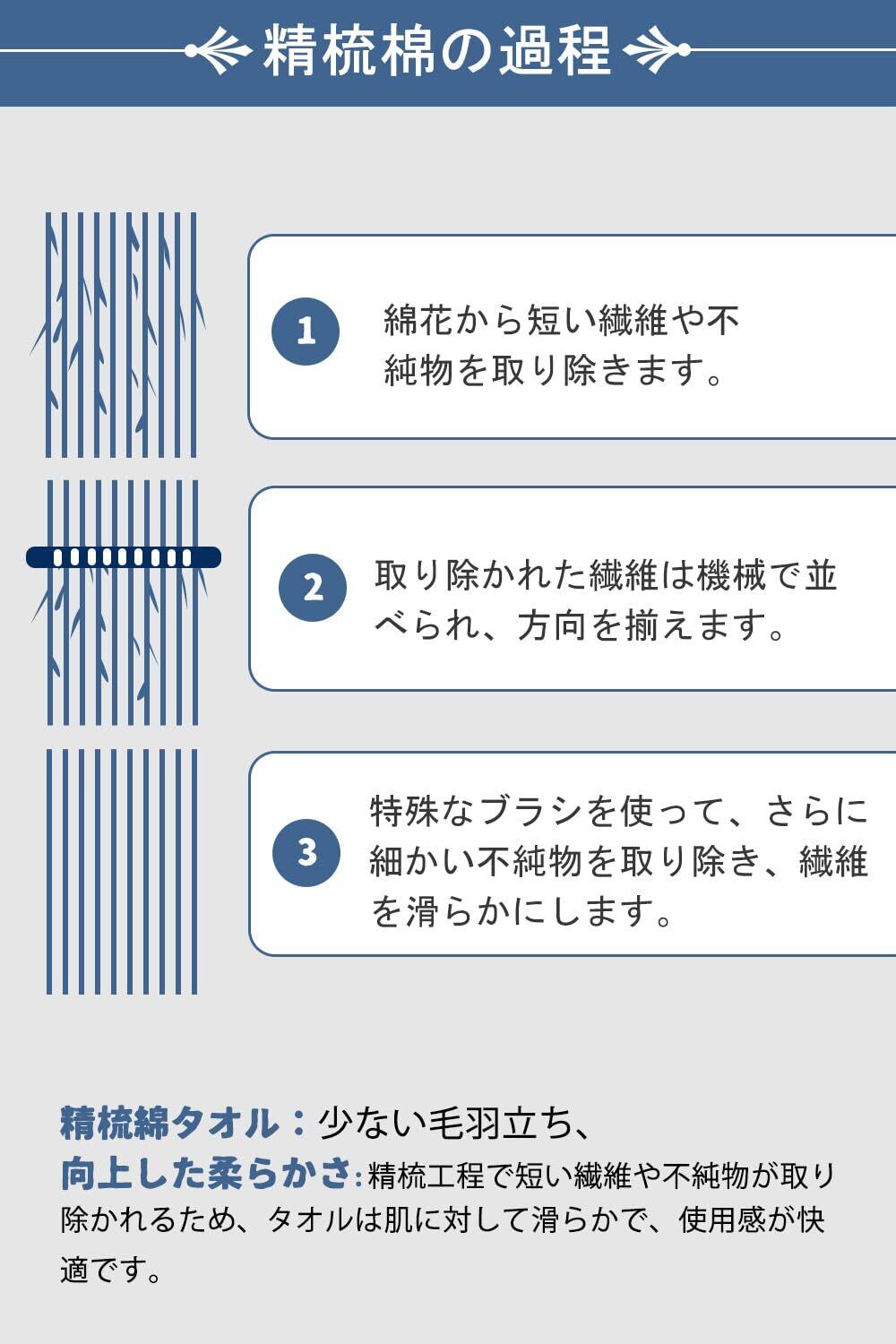 【高い吸水性】:精梳綿のフェイスタオルは、優れた吸水性を持ち、水分を素早く吸収し、お風呂やシャワー後に快適なドライな肌触りを実現します。また、水泳後や運動後など、汗をかいたときにも、速乾性が高いため、すぐに乾かすことができます。