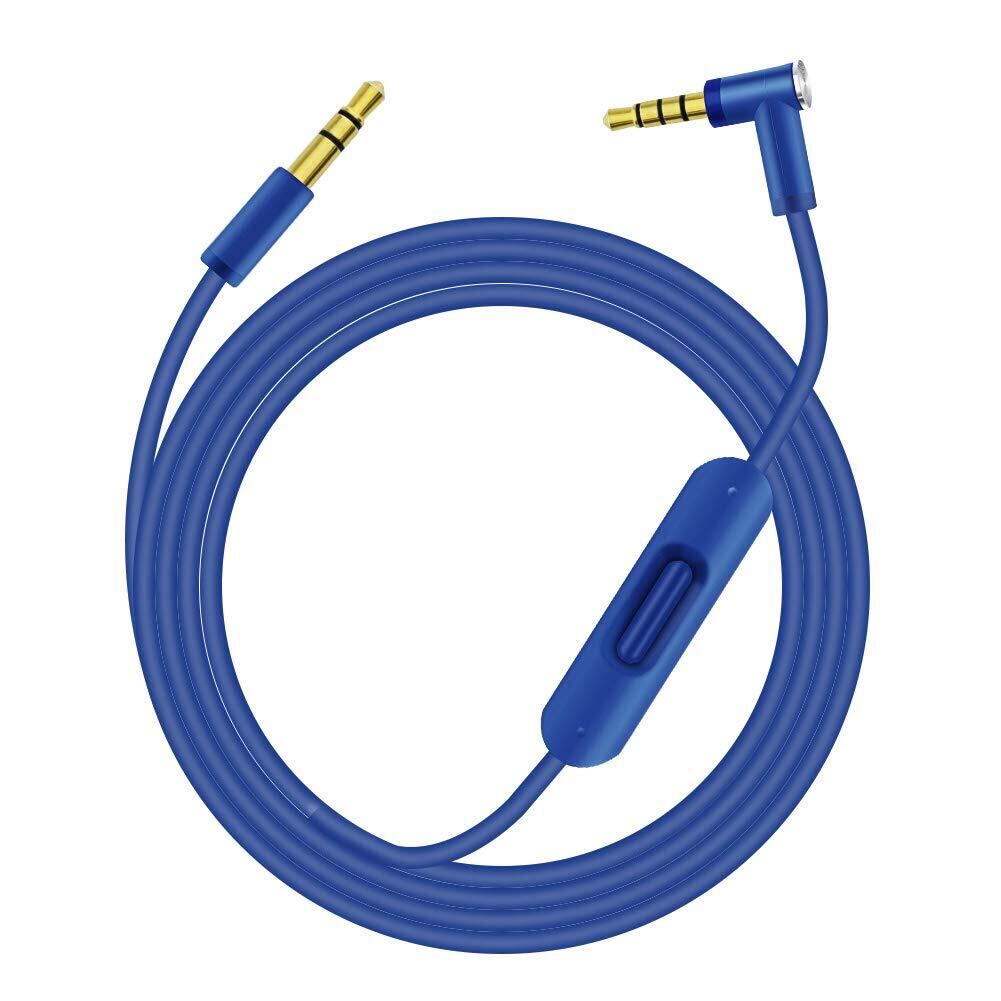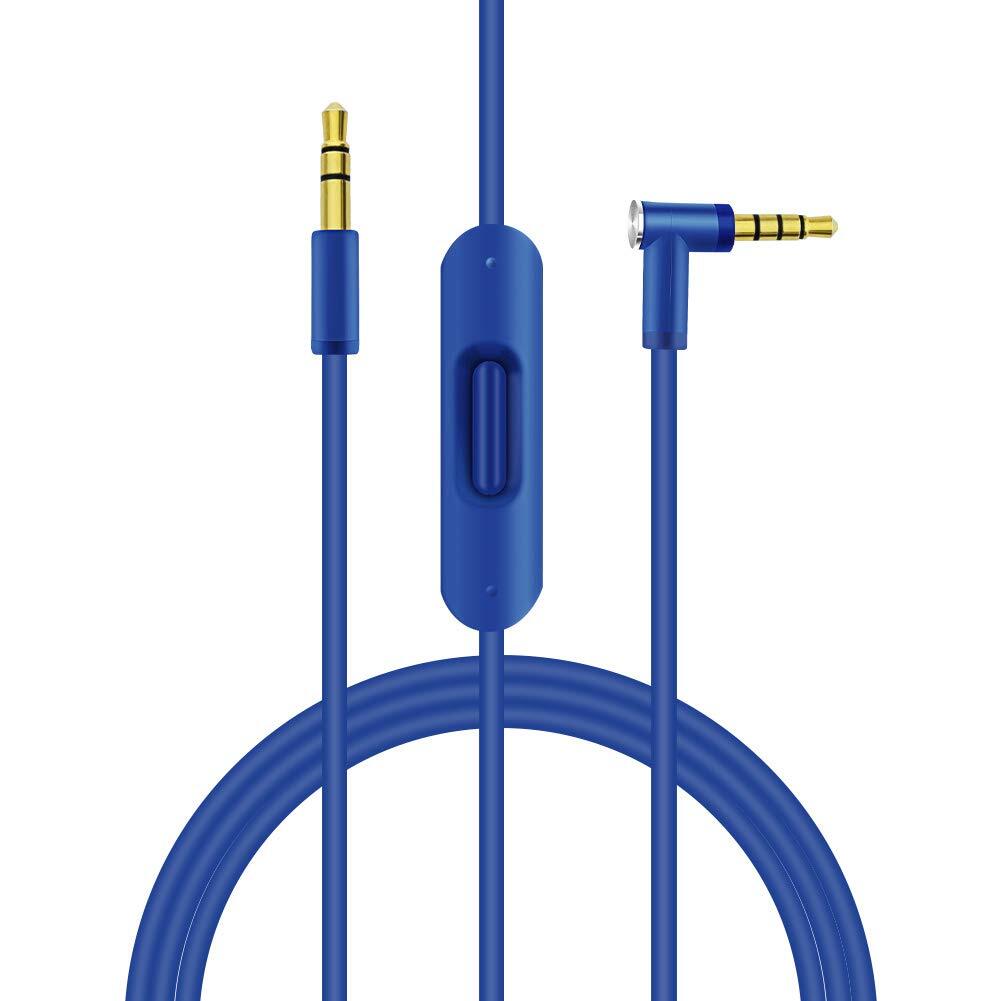 取り替え用オーディオケーブルコードワイヤ Beats by Dr Dreのヘッドフォン用インラインマイクとコントロール付き Solo/Studio/Pro/Detox/Wireless/Mixr/Executive/Pill対応 ブルー