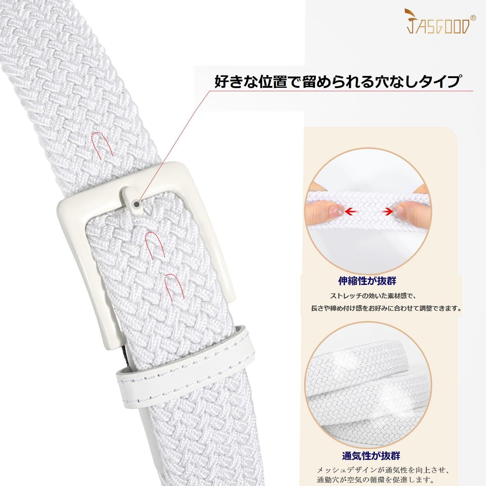 [JASGOOD] ベルト メンズ ゴルフベルト レディース メッシュ 編み 男女兼用 穴なし ストレッチ ゴム メッシュベルト ゴムベルト 伸縮 ウエスト 無段階 調整 自由自在 伸縮