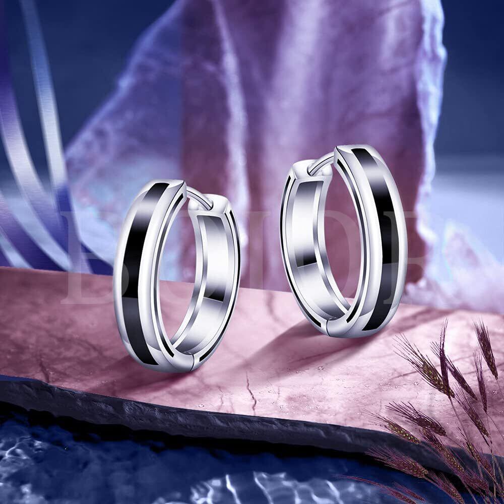 【両面用のデザイン】ピアスメンズはおしゃれでシンプルな幾何円要素を使ってデザインされており、フープピアスメンズの両面には黒いエナメルの厚さと均一度が優れており、エナメルの色が均一で、高級な質感を持っている。ピアスリングはシルバー925で作られ、細部ごとにプラチナの質感の光沢を持たせています。金属アレルギー対応ピアスはシンプルながらもレイヤー感を失わず、神秘的な黒は尊くても張りがなく、淡々と逆境に立ち向かう武士魂がこもっている。18金ピアスは両面装着が可能で、普段使いや贈り物用にもぴったりの男性ピアスアクセサリーです。
