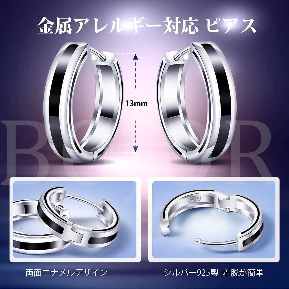 BOJOR ピアス メンズ フープピアス シルバー925 リング 「武士魂」 金属アレルギー対応 ピアス 両耳 男性 アクセサリー プレゼント 黑 ブラック