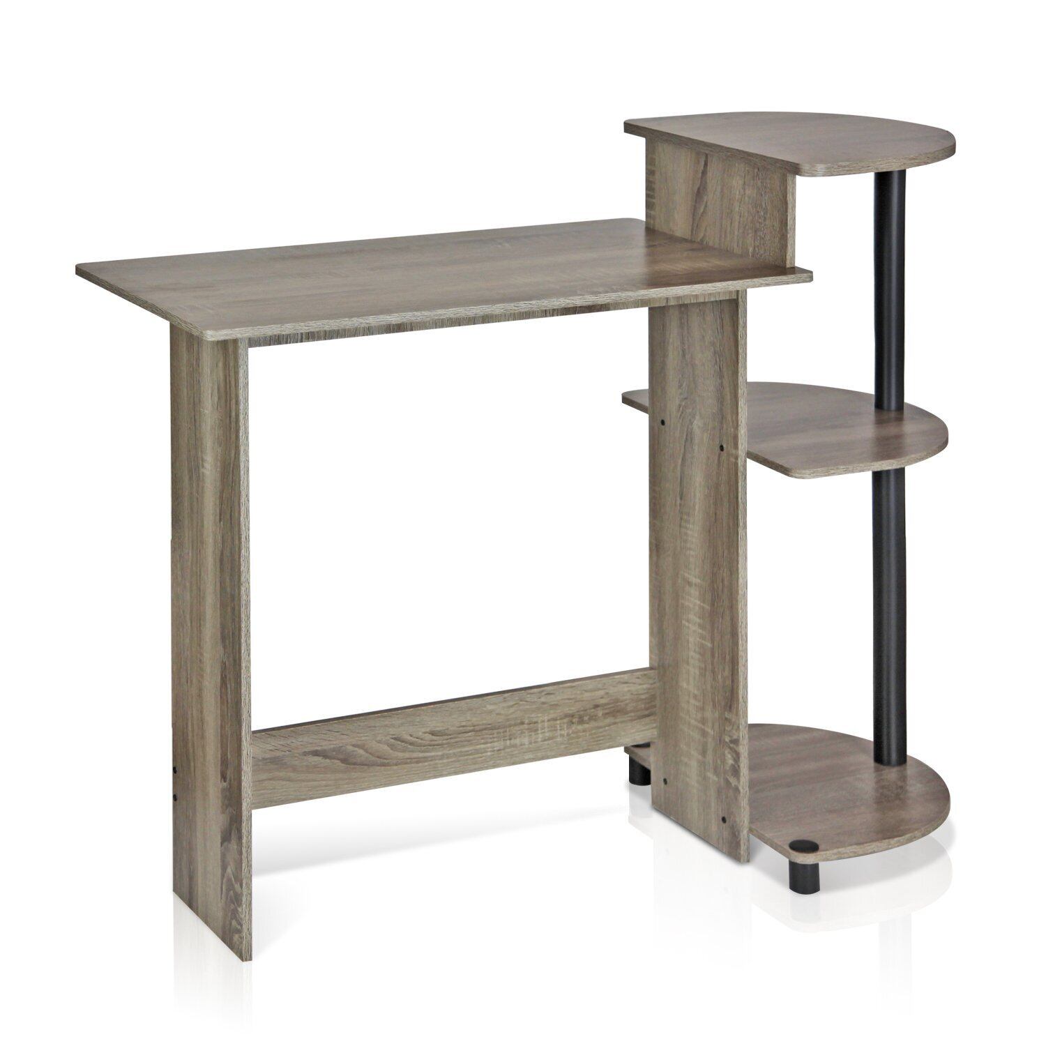 フリノ(Furinno) コンパクトコンピューターデスク 棚付き カラー:フレンチオークグレー/ブラック