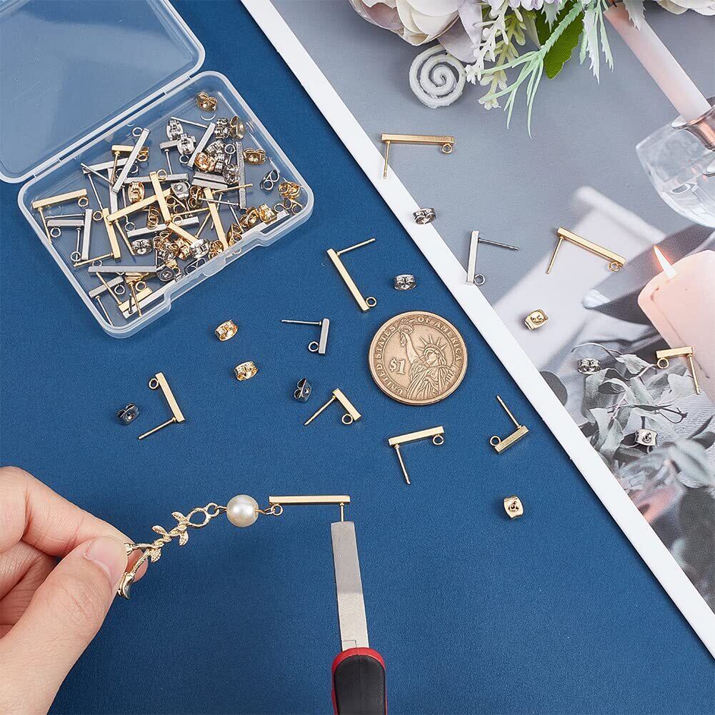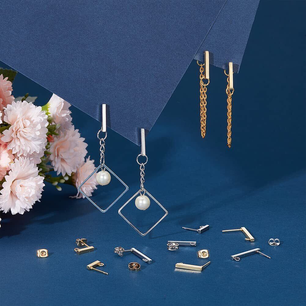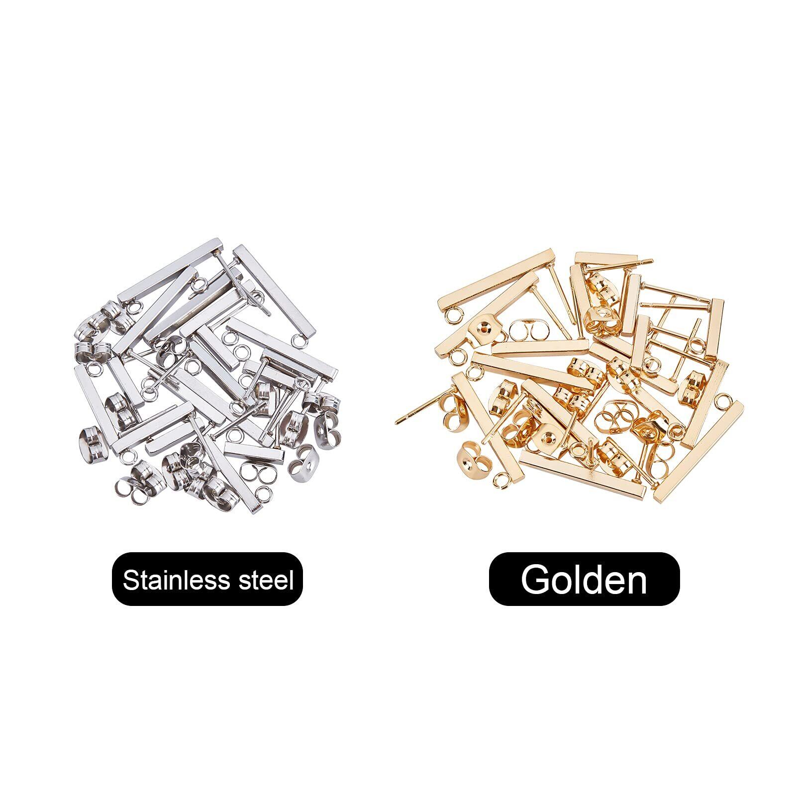 UNICRAFTALE 約36個 2色 3種サイズ 10/15/20mm ステンレス ピアスパーツ ループ付き ピアスキャッチ付き 長方形 スティック型 ステンレス スタッドピアス イヤリングパーツ ポストピアス 金具 ピアスパーツ 耳飾り イヤリング作り アクセサリーパーツ クラフト用品 手作り素材 DIY材料