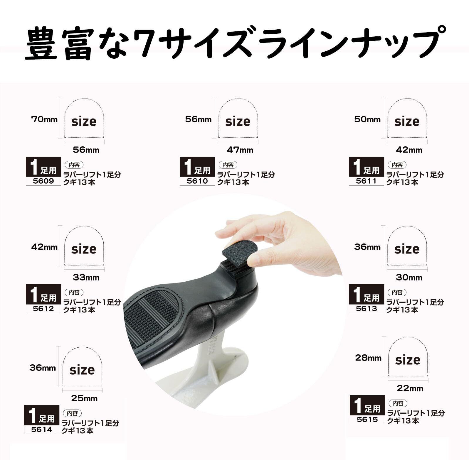 婦人用ラバーリフト。婦人かかとゴム交換修理キット 1足分。釘が13本入っています。靴のかかとのすり減りを交換。かかとの修理が簡単にできます。