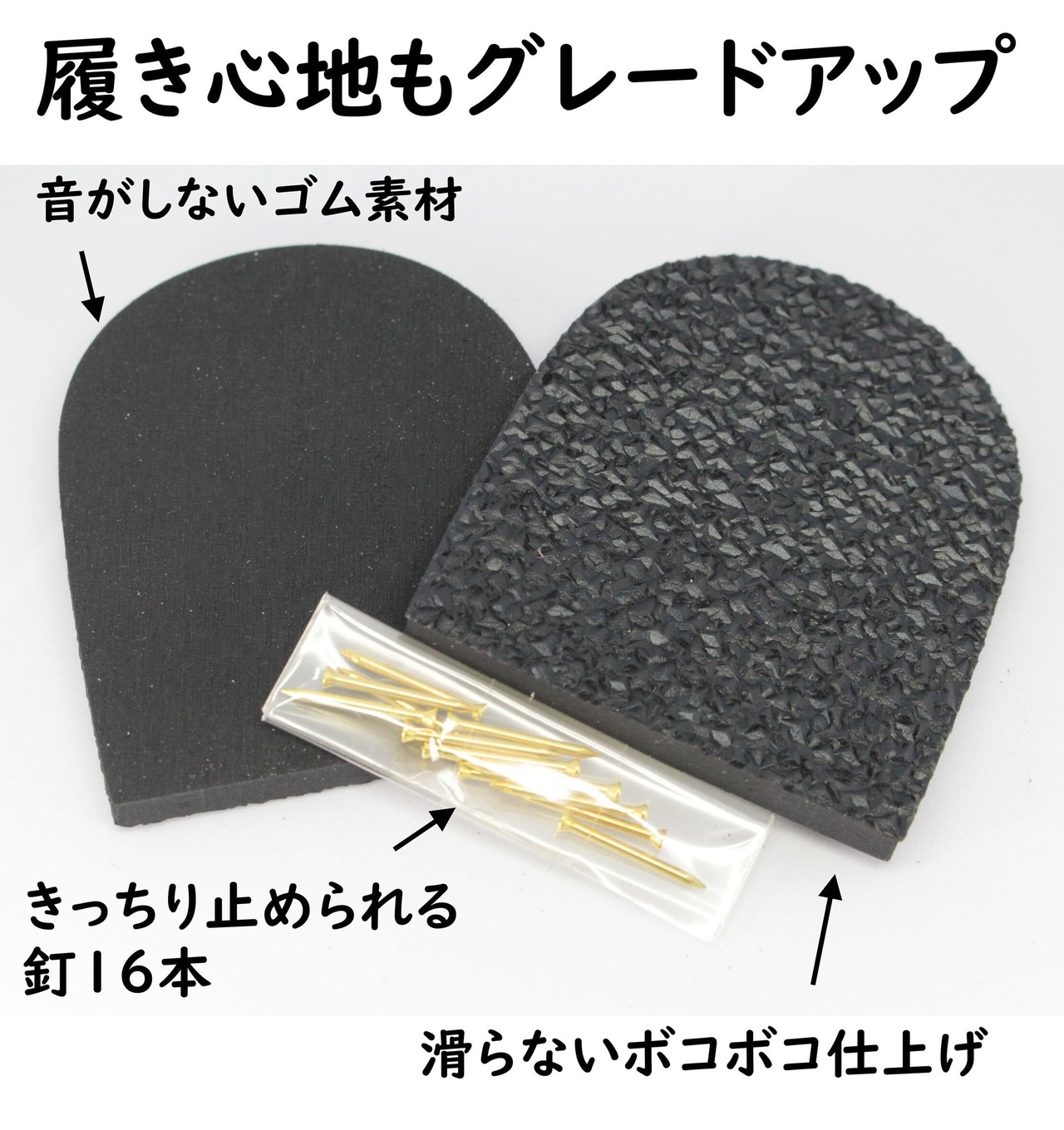 特殊ゴムを使用していますので摩耗に強くすべりにくくフロアーなどでも歩くたびに音がしません。すり減り対策だけでなく履き心地、歩き心地も格段にアップします。