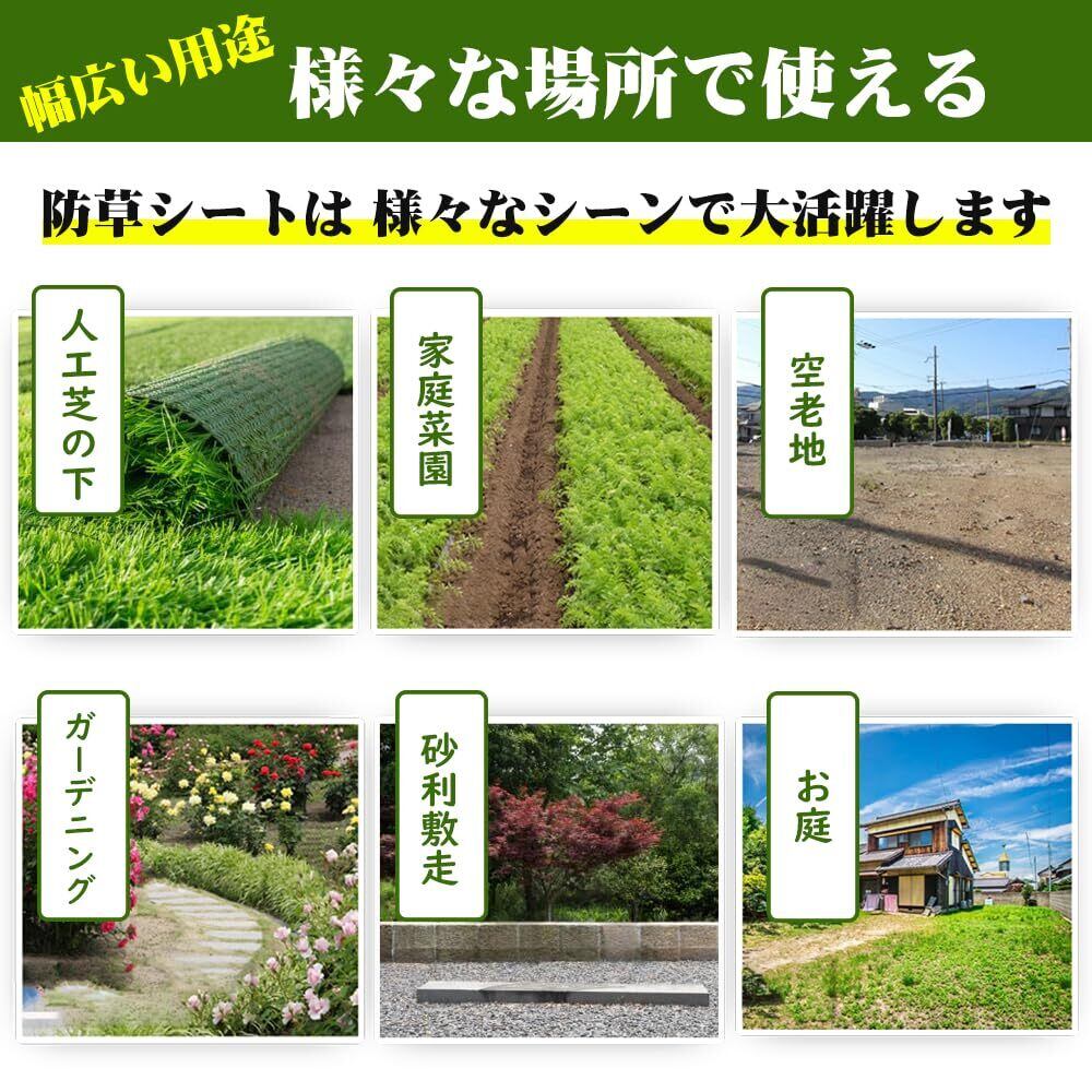 【幅広く使用】防草シートは環境を汚染せず、ハサミで簡単に任意のサイズにカットできます。建物周辺(小道、日当たりの良い場所、ツリーデッキ、花壇)、果樹園、菜園、水田、路肩、空き地などに幅広く使用できます。