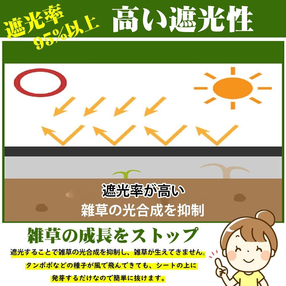 【耐久あり】高面密度100g/m²の高品質ポリプロピレン(UV耐候剤配合)を使用し、従来の除草シートに比べて厚みがあり、破れにくいです。雑草や雑草問題を除去する必要がなく、約10年の寿命があります。