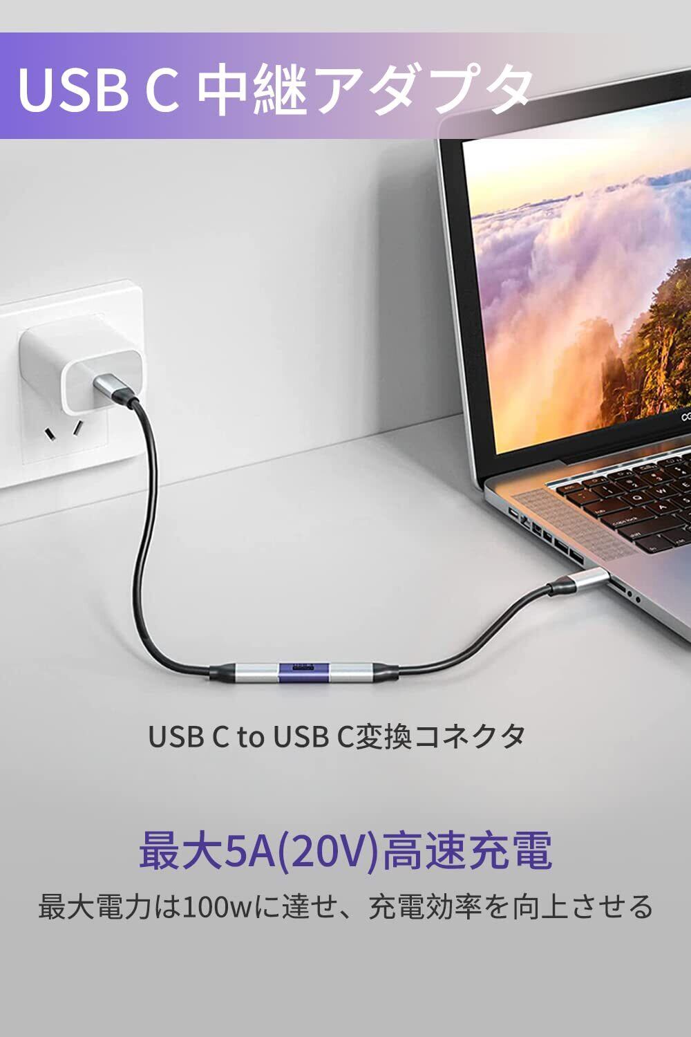 YFFSFDC USB C 中継アダプタ メス to メス USB Type C 延長アダプタ【40Gbps高速データ転送&100W/5A急速充電& 8K@60Hz映像出力】タイプ USB-C Type C 延長コネクタ USB4メス 延長コード 2個セット 中継器の両端はtype-c to type-c線の使用のみをサポートしている