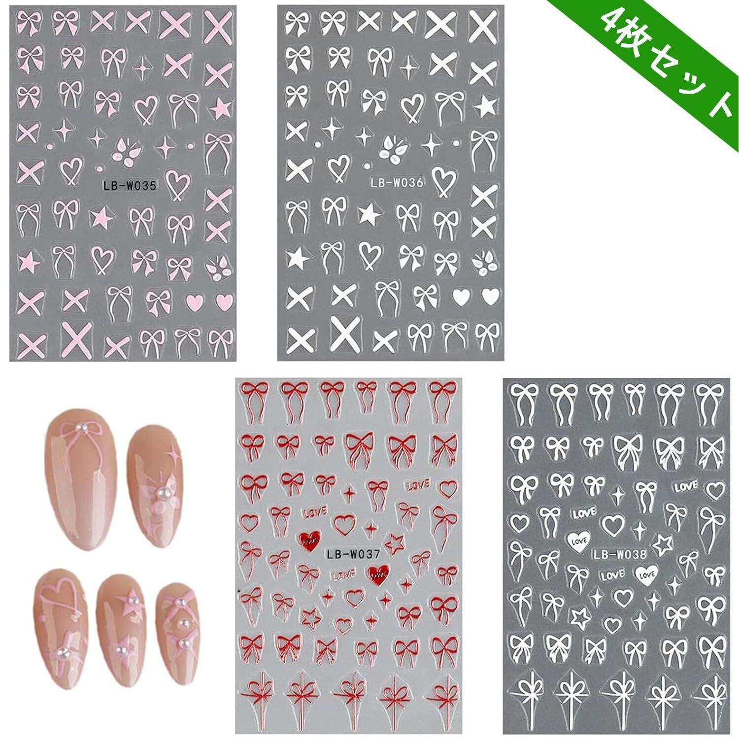 SOYANGNEK ネイルステッカー ハート形 ネイルシールリボン 3D立体感 ジュエリーストーンシール 自粘着 蝶結び 可愛い ネイルデコレーション用 シール ネイル スマホケース ハンドメイドアイテム カードのDIYに 初心者に最適 女の子 子供用