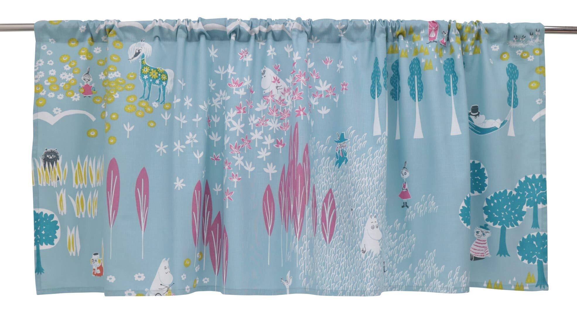 クォーターリポート (MOOMIN) ムーミン 小窓用 カフェカーテン ここにいるよ サックス 約幅140×丈52cm 綿100% 目隠し 収納 【日本製】